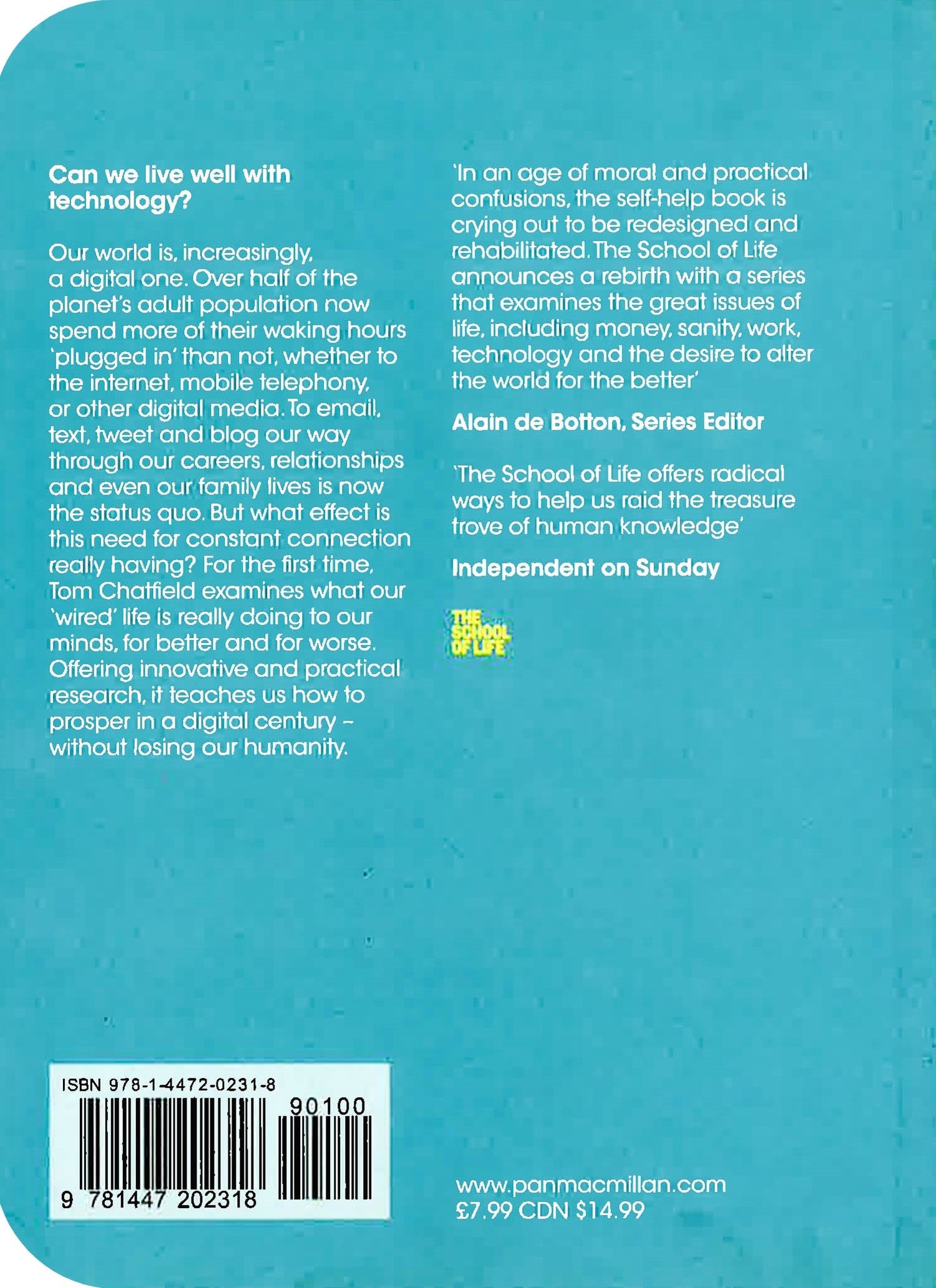 Our world is, increasingly, a digital one. Over half of the planet's adult population now spend more of their waking hours 'plugged in' than not, whether to the internet, mobile telephony, or other digital media. To email, text, tweet and blog our way through our careers, relationships and even our family lives is now the status quo. But what effect is this need for constant connection really having? For the first time, Tom Chatfield examines what our wired life is really doing to our minds and our culture - and offers practical advice on how we can hope to prosper in a digital century. One in the new series of books from The School of Life, launched May 2012: How to Stay Sane by Philippa Perry How to Find Fulfilling Work by Roman Krznaric How to Worry Less About Money by John Armstrong How to Change the World by John-Paul Flintoff How to Thrive in the Digital Age by Tom Chatfield How to Think More About Sex by Alain de Botton