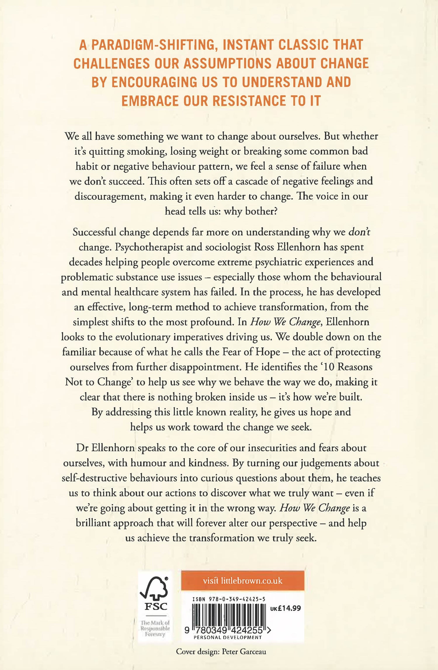 Ellenhorn speaks to the core of our insecurities and fears about ourselves, with a humour and kindness. By turning our judgements about self-destructive behaviours into curious questions about them, he teaches us to think about our actions to discover what we truly want - even if we're going about getting it in the wrong way. How We Change is a brilliant approach that will forever alter our perspective and help us achieve the transformation we truly seek.