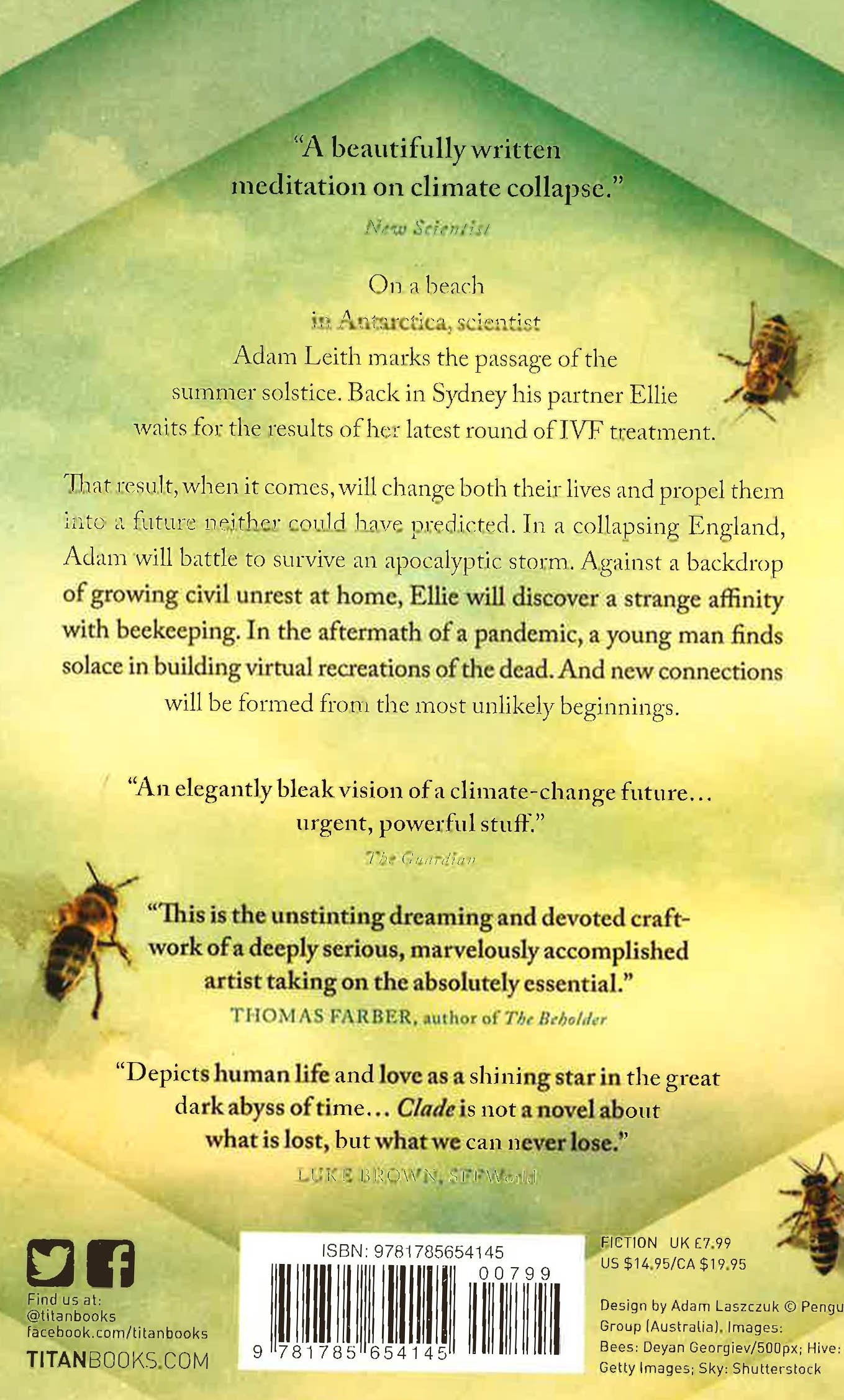 On a beach in Antarctica, scientist Adam Leith marks the passage of the summer solstice. Back in Sydney his partner Ellie waits for the results of her latest round of IVF treatment.That result, when it comes, will change both their lives and propel them into a future neither could have predicted. In a collapsing England, Adam will battle to survive an apocalyptic storm. Against a backdrop of growing civil unrest at home, Ellie will discover a strange affinity with beekeeping. In the aftermath of a pandemic, a young man finds solace in building virtual recreations of the dead. And new connections will be formed from the most unlikely beginnings.