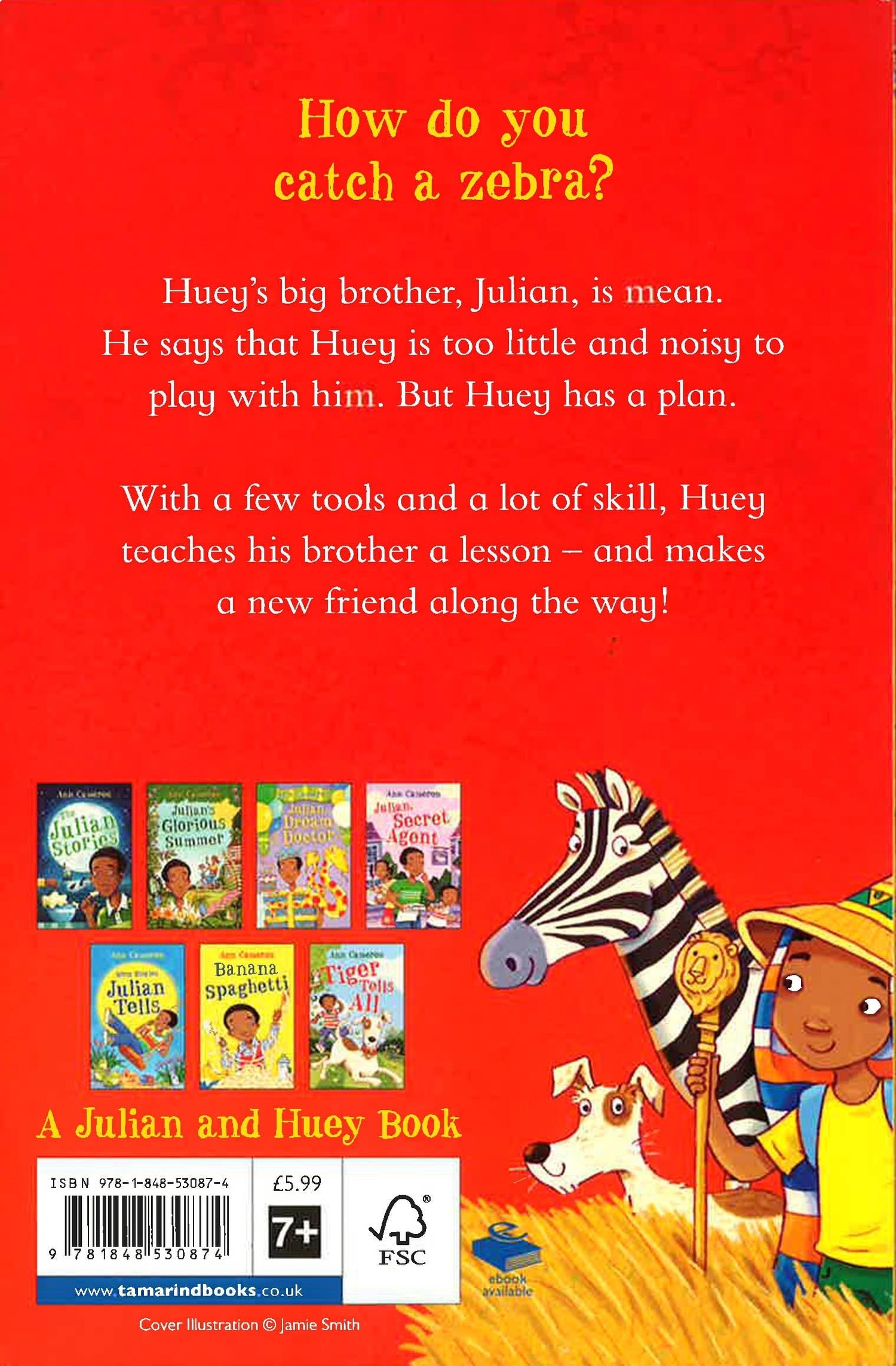 How do you catch a zebra? Huey's big brother, Julian, is mean. He says that Huey is too little and noisy to play with him. But Huey has a plan. With a few tools and a lot of skill, Huey teaches his brother a lesson - and makes a new friend along the way!