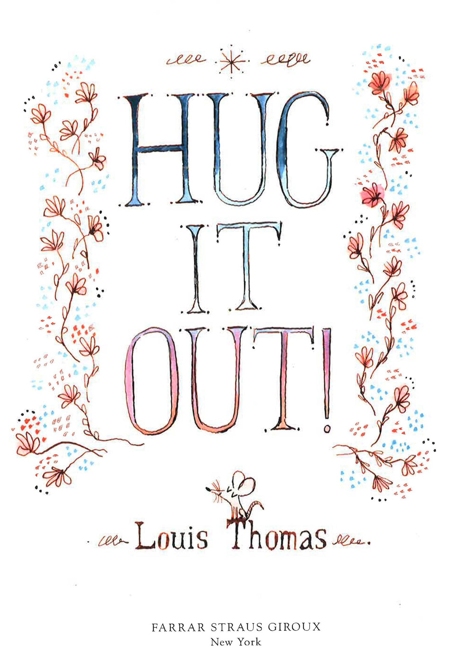 A fresh, funny take on sibling rivalry and conflict resolution, as two sparring siblings are forced to "hug it out."Mom has had enough of Woody and Annie's incessant fighting. When her pleas for sharing and apologizing are ignored, she demands they "hug it out." At first, the warring siblings are confused. Hugging? But after a long afternoon of forced embraces, the brother and sister decide to call a truce to avoid yet another icky hug. However it doesn't take long for them to miss that newfound closeness. And soon they're looking for something to fight about so they can hug it out once more! Adults will delight in a new solution to conflict, while kids will enjoy yelling "HUG IT OUT!" at each familiar situation. With subversive humor and smart, eye-catching illustrations, Louis Thomas's debut is a cheeky tribute to sibling rivalry and (cuddly) compromise.