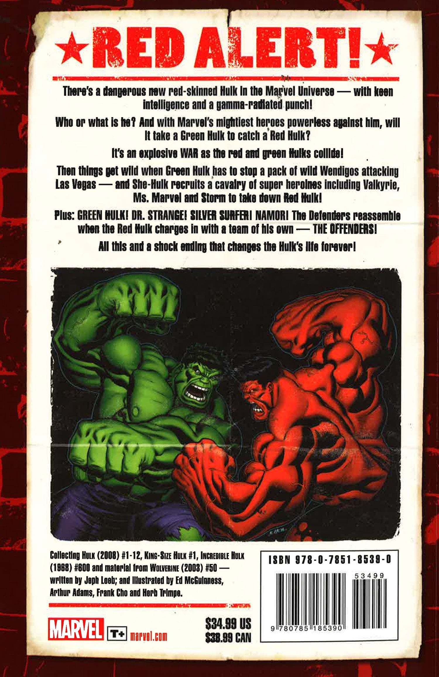 Red alert! There's a sadistic new red-skinned Hulk in the Marvel Universe, with keen intelligence and a radioactive touch! Who or what is he? And with Marvel's heroes powerless against him, will it take a Hulk to catch a Hulk? It's an explosive battle as the red and green Hulks collide! But even as Bruce Banner is attacked by a pack of wild Wendigos, She-Hulk recruits a cavalry of super heroines including Valkyrie, Thundra, Ms. Marvel and Storm! Plus: the Defenders are reassembled to take down the Red Hulk, but he's got a team of his own! COLLECTING Hulk 1-12, King-Size Hulk 1, Incredible Hulk 600, Wolverine 50