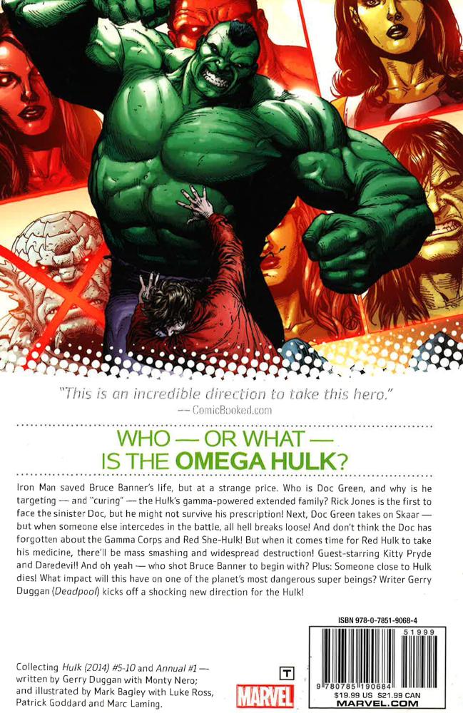 Writer Gerry Duggan (DEADPOOL) kicks off a shocking new direction for the Hulk! Iron Man saved Bruce Banner's life, but at a strange price. Who or what is Doc Green, aka the Omega Hulk? And why is he targeting - and "curing" - the Hulk's Gamma-powered extended family? Rick Jones is the first to face the sinister Doc, but he might not survive his prescription! Next, Doc Green takes on Skaar - but when someone else intercedes in the battle, all hell breaks loose! And don't think the Doc has forgotten about the Gamma Corps and Red She-Hulk! But when it comes time for Red Hulk to take his medicine, there'll be mass smashing and widespread destruction! Guest-starring Kitty Pryde and Daredevil! And oh yeah -who shot Bruce Banner to begin with? Plus: Someone close to HULK dies! What impact will this have on one of the most dangerous super beings on the planet?