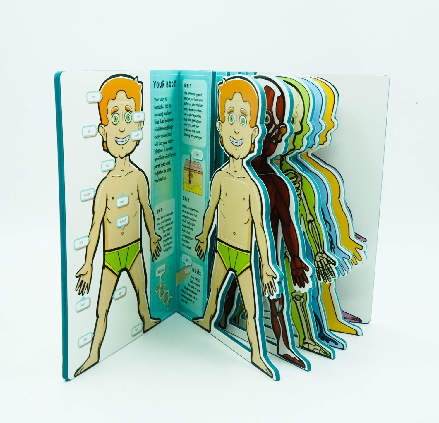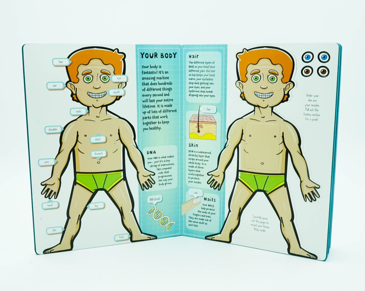 See inside your insides in Human Body, with shaped pages covering every layer from skin to skeleton.