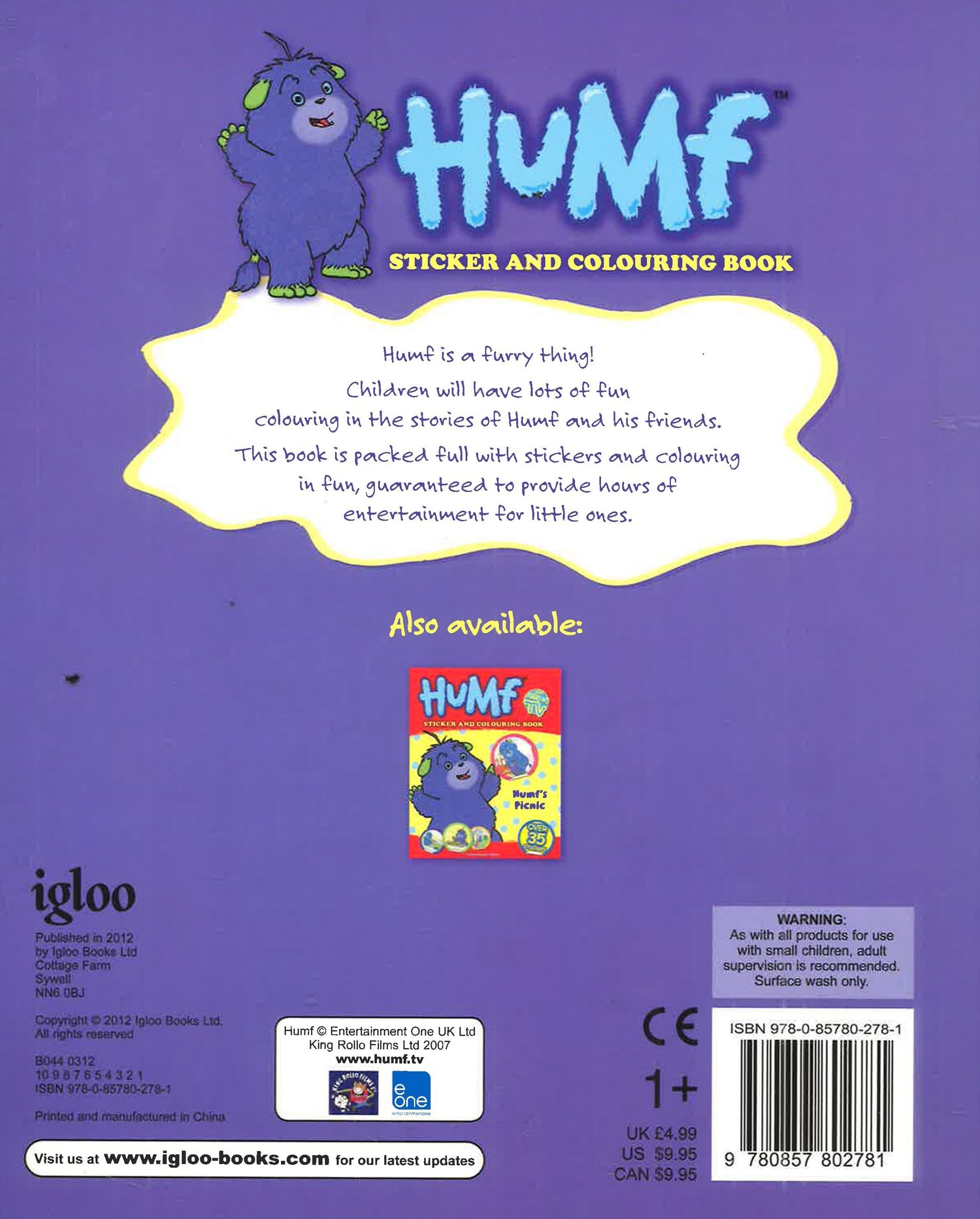 Children will have lots of fun colouring in the stories of Humf and his friends. This book is packed full with stickers and colouring in fun, guaranteed to provide hours of entertainment for little ones.