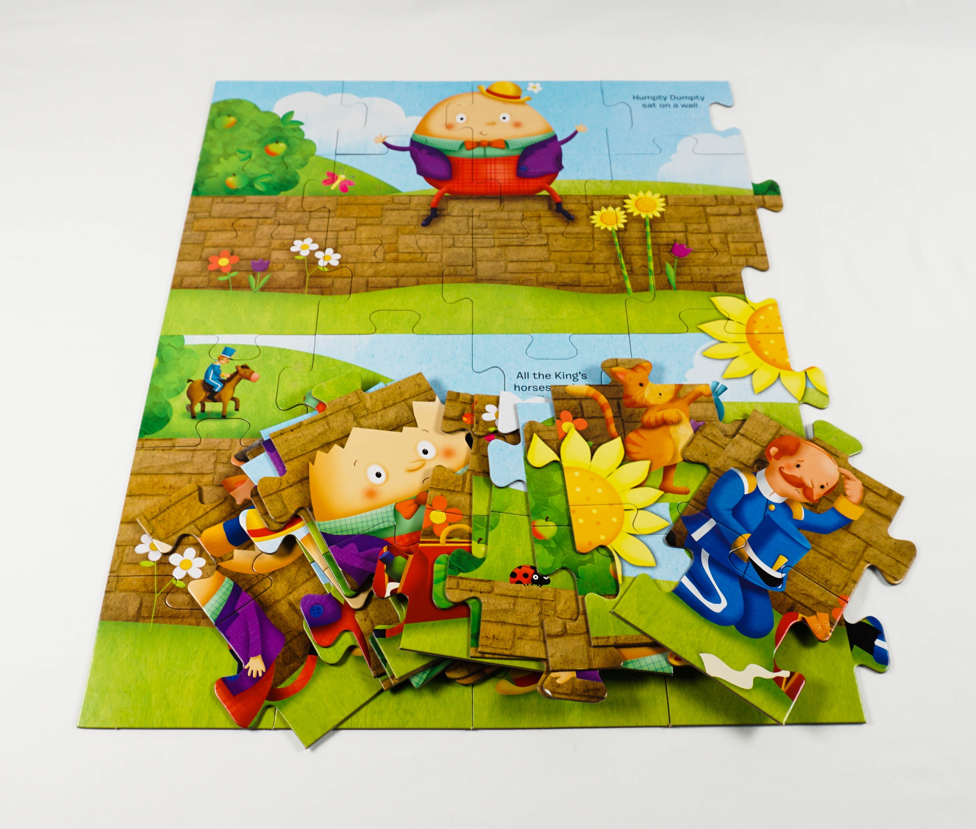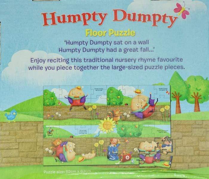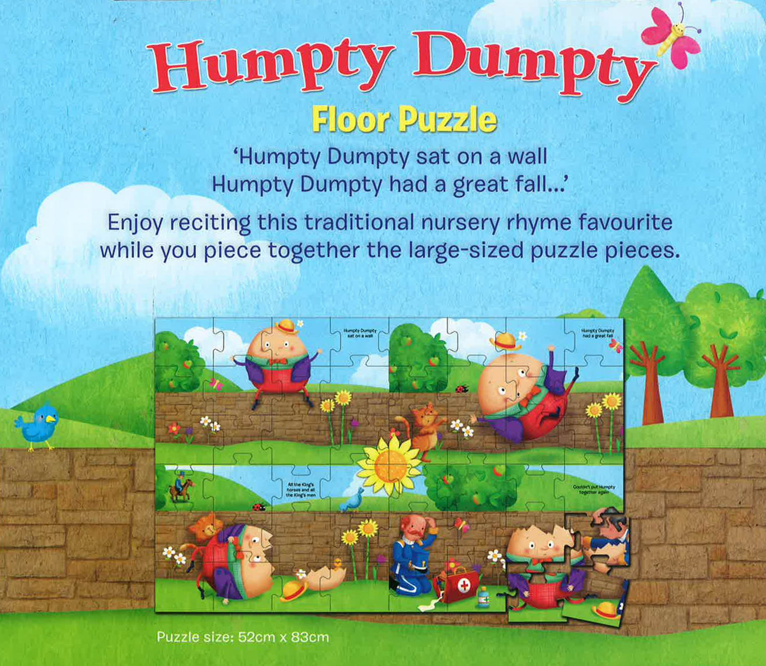 This favourite nursery rhyme comes to life with a large piece floor puzzle perfect for little hands. The 48-piece floor puzzle features four scenes and is housed in a handy box with handle perfect for travelling or sleepovers.Sturdy large puzzle pieces.Colourful and fun artwork from Anna Jones.Puzzle is contained in a sturdy box with handle, perfect for travel.