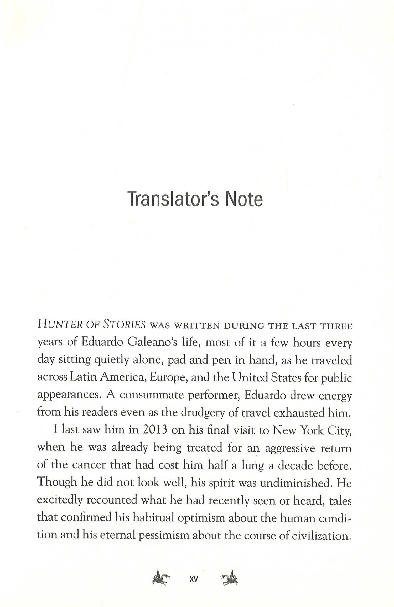 Comprised of all new material, published here for the first time in a wonderful English translation by longtime collaborator Mark Fried, Hunter of Stories is a deeply considered collection of Galeano's final musings and stories on history, memory, humor, and tragedy. Written in his signature style--vignettes that fluidly combine dialogue, fables, and anecdotes--every page displays the original thinking and compassion that has earned Galeano decades and continents of renown.