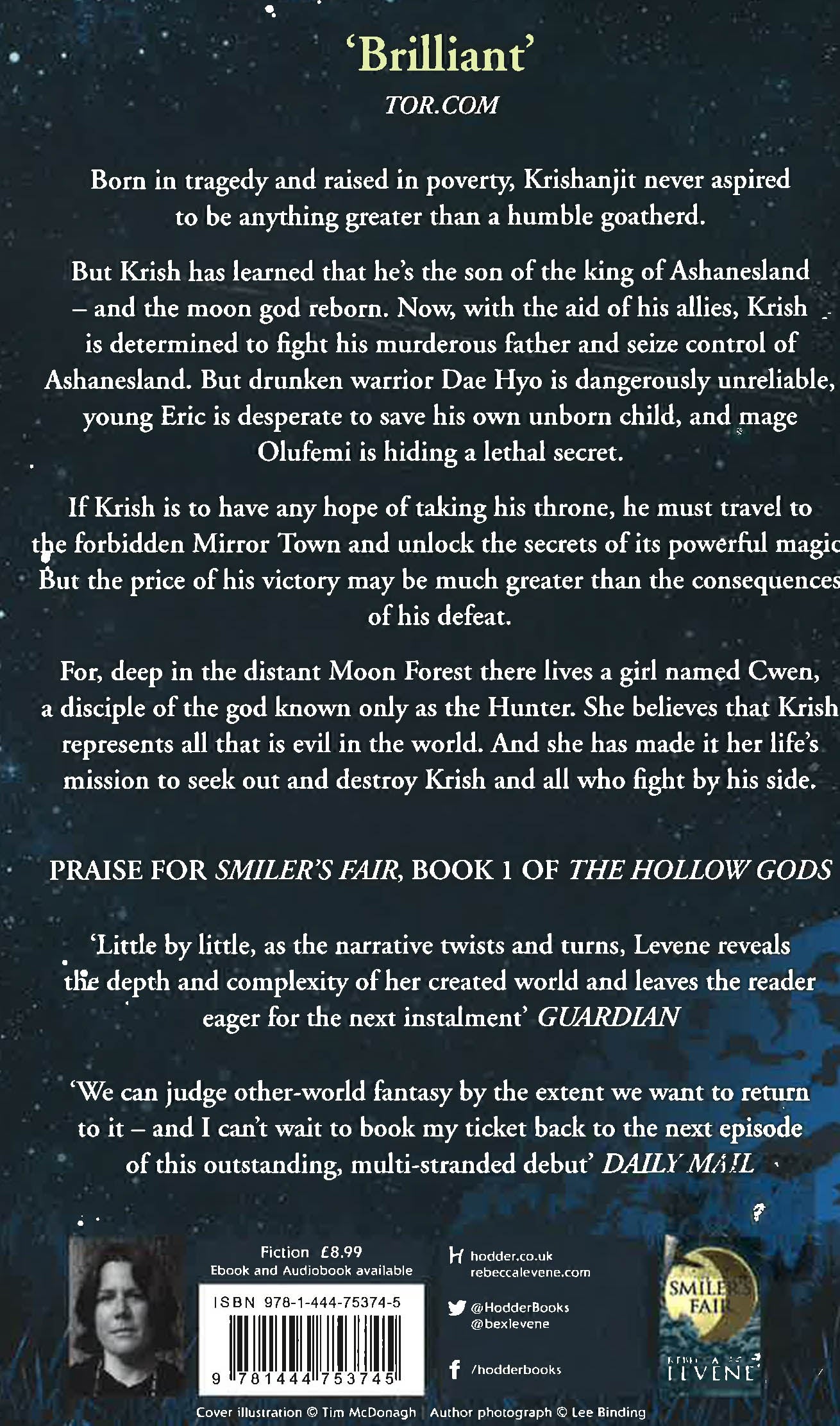 Born in tragedy and raised in poverty, Krishanjit never aspired to be anything greater than what he was: a humble goatherd, tending his flock on the slopes of his isolated mountain home.But Krish has learned that he's the son of the king of Ashanesland - and the moon god reborn. Now, with the aid of his allies, Krish is determined to fight his murderous father and seize control of Ashanesland. But his allies Dae Hyo, Eric and Olufemi, are dangerously unreliable and hiding secrets of their own.To take Ashanesland, Krish must travel to the forbidden Mirror Town and unlock the secrets of its powerful magic. But the price of his victory may be much greater than the consequences of his defeat... For, deep in the distant Moon Forest lives a girl called Cwen - a disciple of the god known only as the Hunter. She believes that Krish represents all that is evil in the world. And she has made it her life's mission to seek Krish and destroy all who fight by his side.