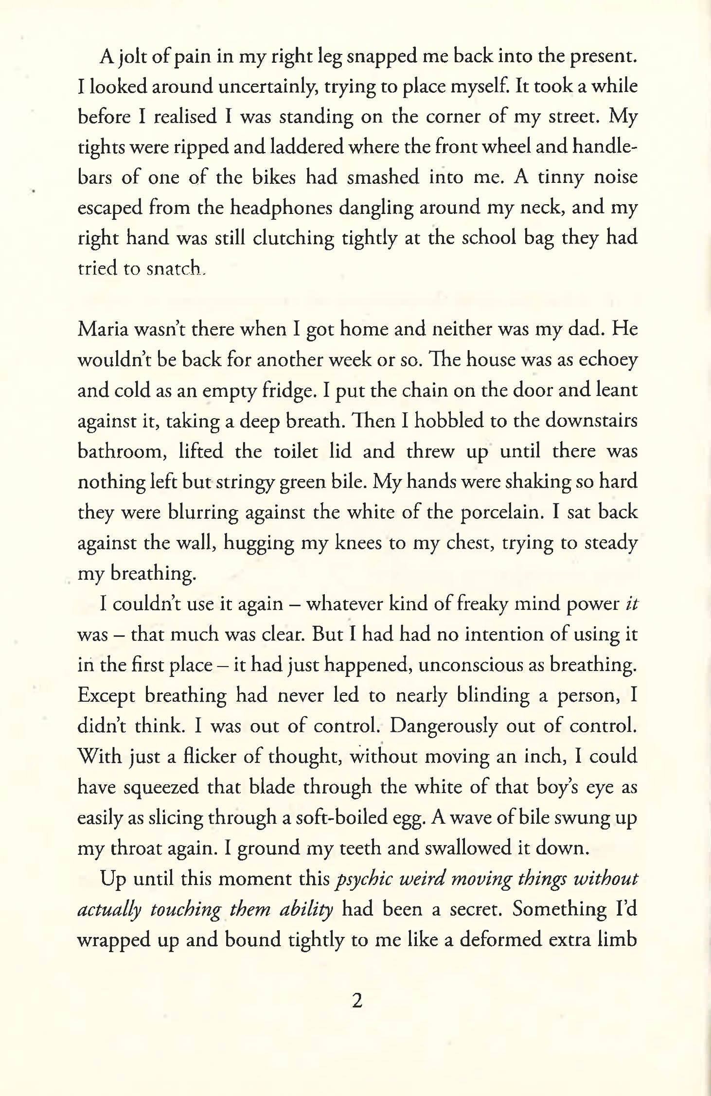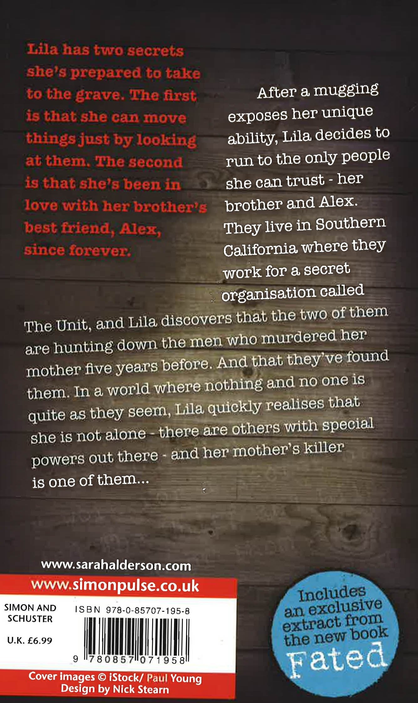 17-year-old Lila has two secrets she's prepared to take to the grave. The first is that she can move things just by looking at them. The second is that she's been in love with her brother's best friend, Alex, since forever. After a mugging exposes her unique ability, Lila decides to run to the only people she can trust - her brother and Alex. They live in Southern California where they work for a secret organisation called The Unit, and Lila discovers that the two of them are hunting down the men who murdered her mother five years before. And that they've found them. In a world where nothing and no one is quite as they seem, Lila quickly realises that she is not alone - there are others out there just like her - people with special powers -and her mother's killer is one of them...