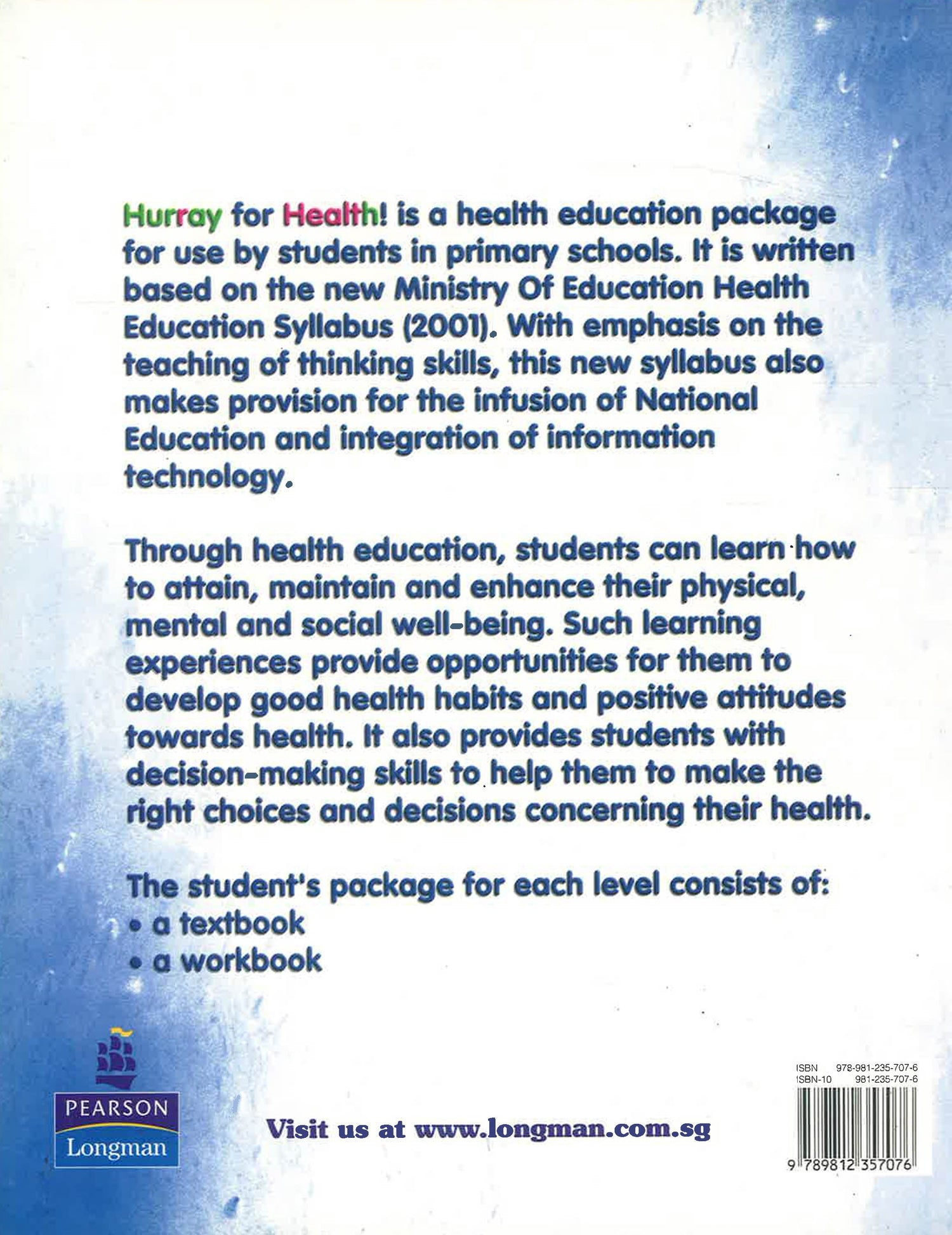 This book is a health education package for use by students in primary schools. It is written based on the new Ministry of Education Health Education Syllabus (2001). With emphasis on the teaching of thinking skills, this new syllabus also makes provision for the infusion of National Education and integration of information technology.