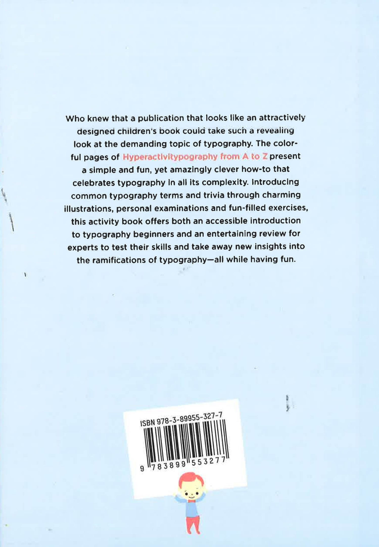 Who knew that a publication that looks like an attractively designed children's book could take such a revealing look at the demanding topic of typography. The colorful pages of Hyperactivitypography from A to Z present a simple and fun, yet amazingly clever how-to that celebrates typography in all its complexity. Introducing common typography terms and trivia through charming illustrations, personal examinations and fun-filled exercises, this activity book offers both an accessible introduction to typography beginners and an entertaining review for experts to test their skills and take away new insights into the ramifications of typography all while having fun.