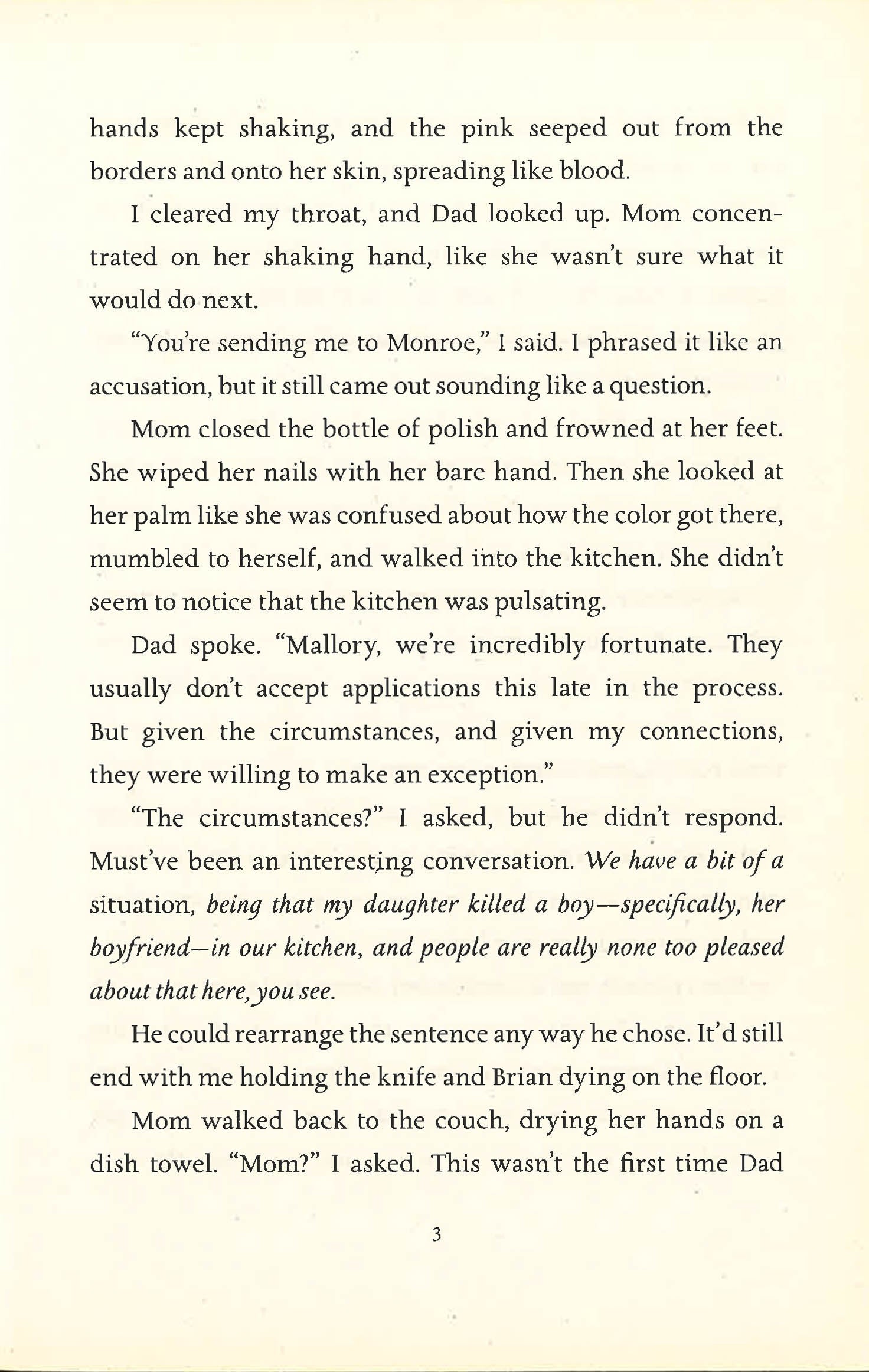 A gripping psychological thriller that gets to the heart of obsession. For fans of Sophie McKenzieMallory's life is falling apart. Her boyfriend was stabbed. He bled to death in her kitchen. Mallory was the one who stabbed him. But she can't remember what happened that night. She only remembers the fear . . . When Mallory's parents send her away to a boarding school, she thinks she can escape the gossip and the threats. But someone, or something, has followed her. There's the hand that touches her shoulder when she's drifting off to sleep. A voice whispering her name. And everyone knows what happened. So when a pupil is found dead, Mallory's name is on their lips. Her past can be forgotten but it's never gone. Can Mallory live with that?