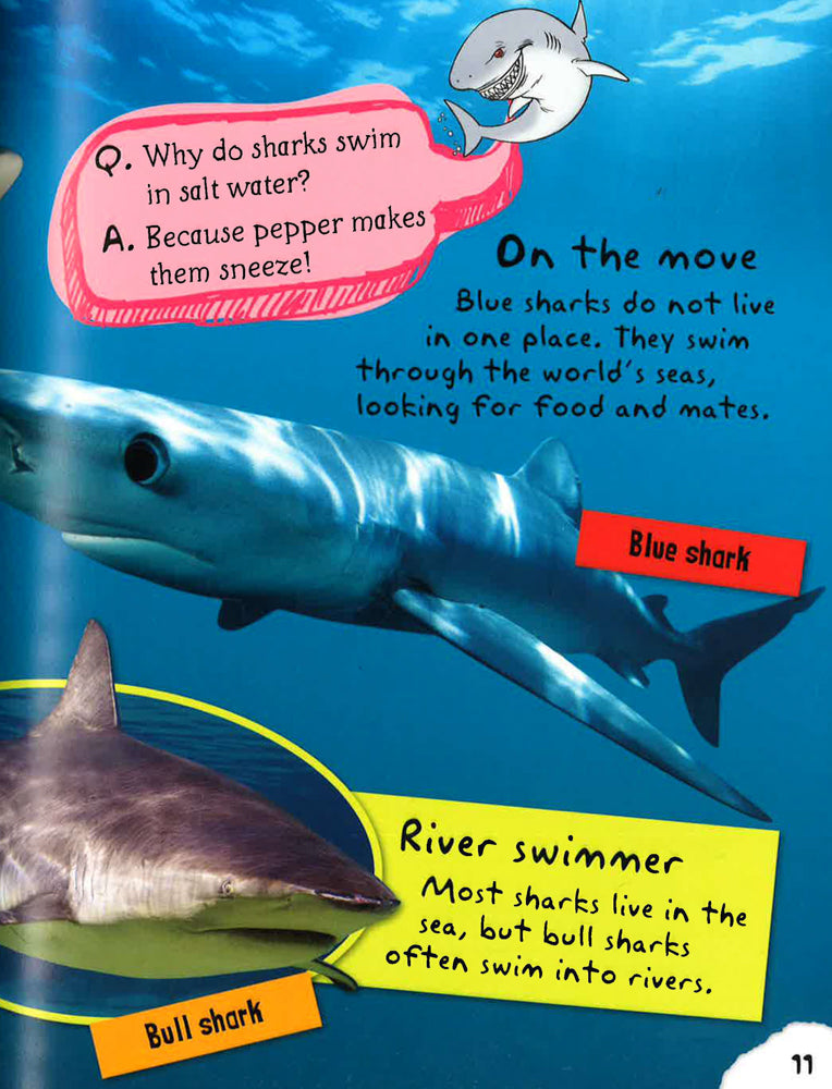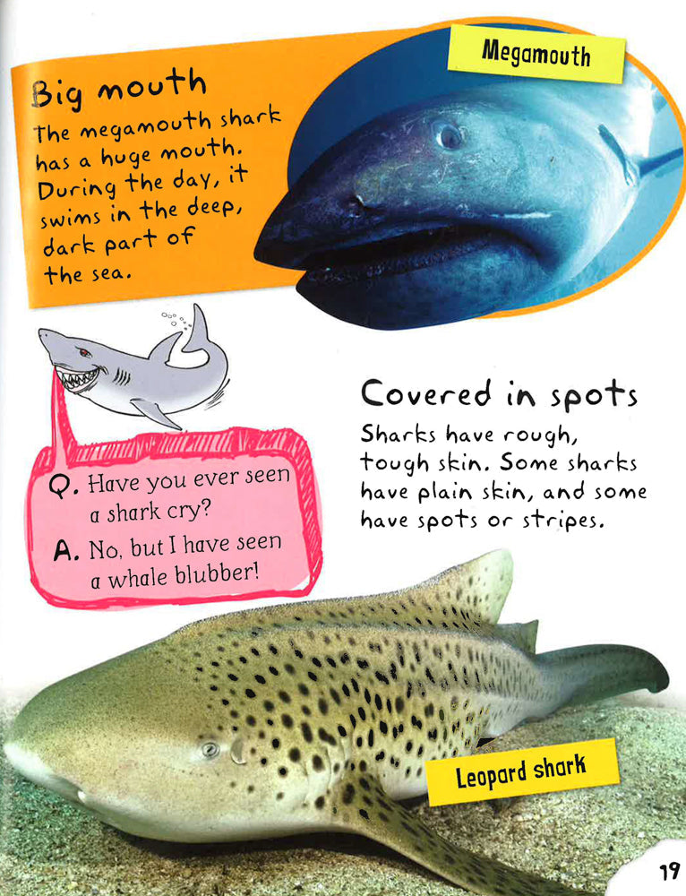 Children will love learning how sharks use camouflage, how they breathe underwater and which species are the deadliest hunters. The fun story at the end adds an interactive element as kids can illustrate it using the 10–20 colourful stickers provided. I am a shark! is one of the best-value shark books for children ever!