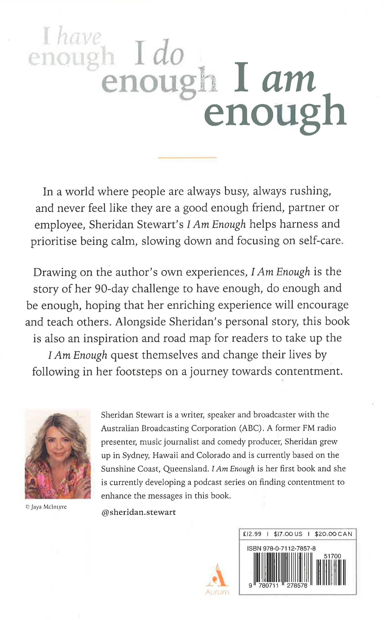 I Am Enough takes us on a 90-day journey towards emotional and financial happiness, as radio presenter Sheridan Stewart teaches us to stop spending and prioritize calm, self-care and what really matters in life.