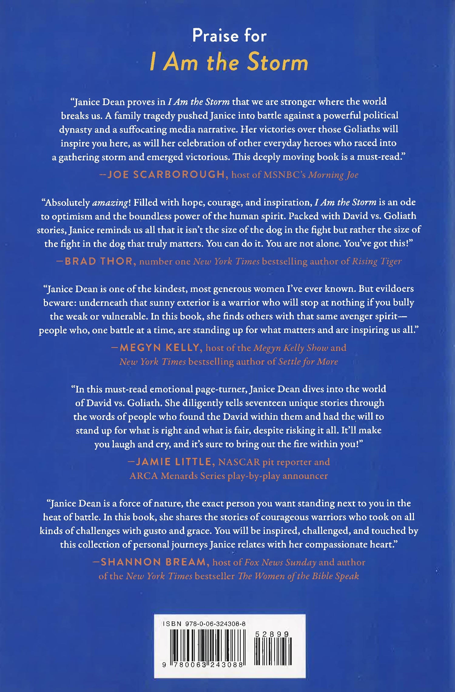 These and other true stories will reveal what it takes for real people to go through life's storms. And sometimes, those storms leave permanent damage. You may need a box of tissues as you read about a veteran who lost his hearing and sight to an IED, or a Minnesota mom who took up the fight against the opioid epidemic after losing her own daughter. But even in our darkest seasons, Janice shows, we can still have hope, resilience, and perseverance. I Am the Storm is an uplifting call to be brave like David no matter what Goliaths we face.