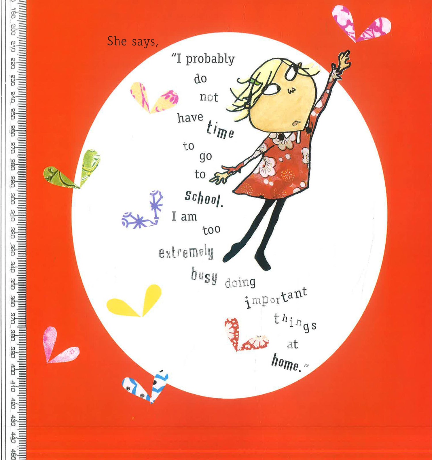 Lola is not so sure about school. After all, why would she need to count higher than ten when she never eats more than ten cookies at a time? Once again, it's up to ever-patient big brother Charlie to persuade Lola that school is worthwhile -- and that her invisible friend, Soren Lorensen, will be welcome, too.