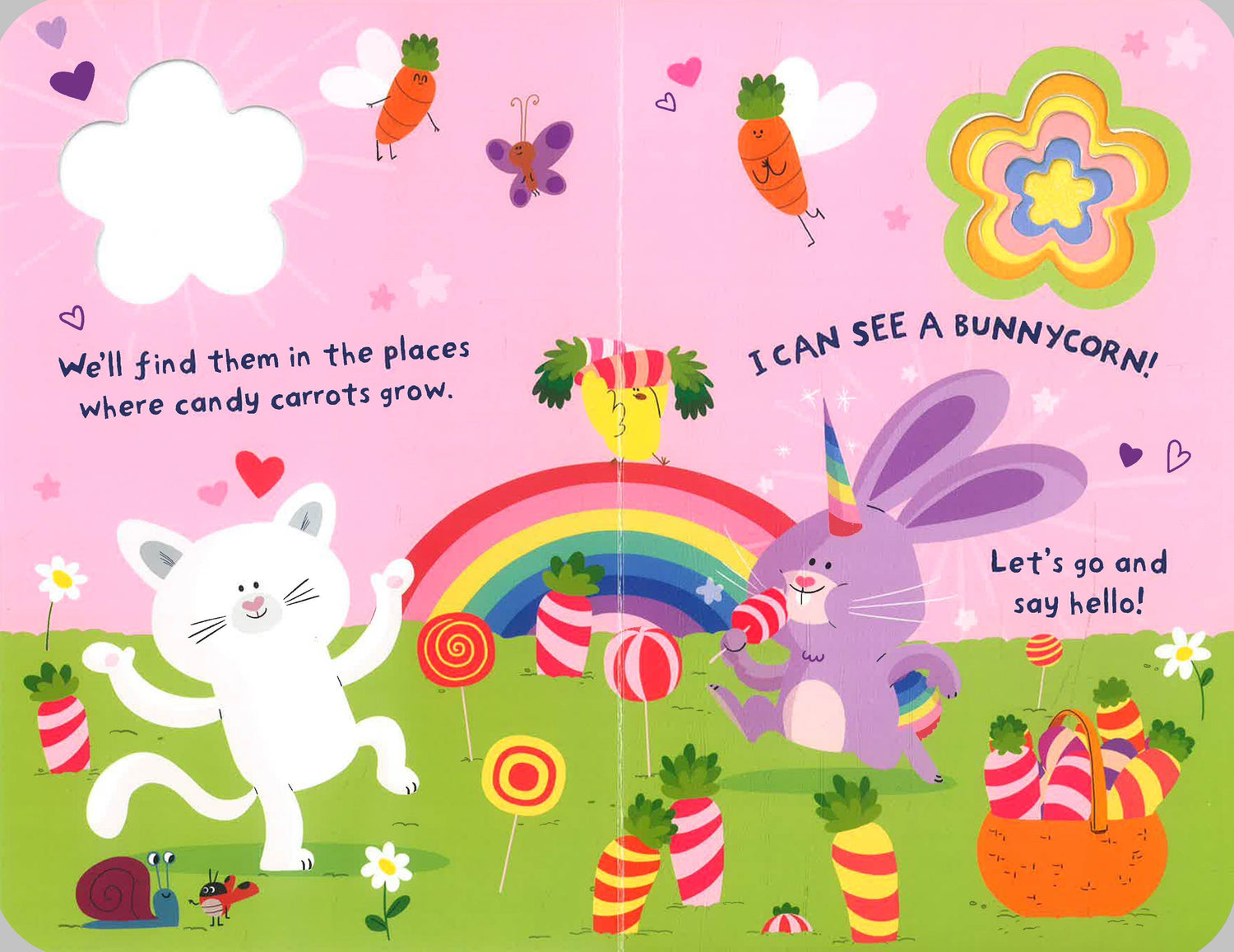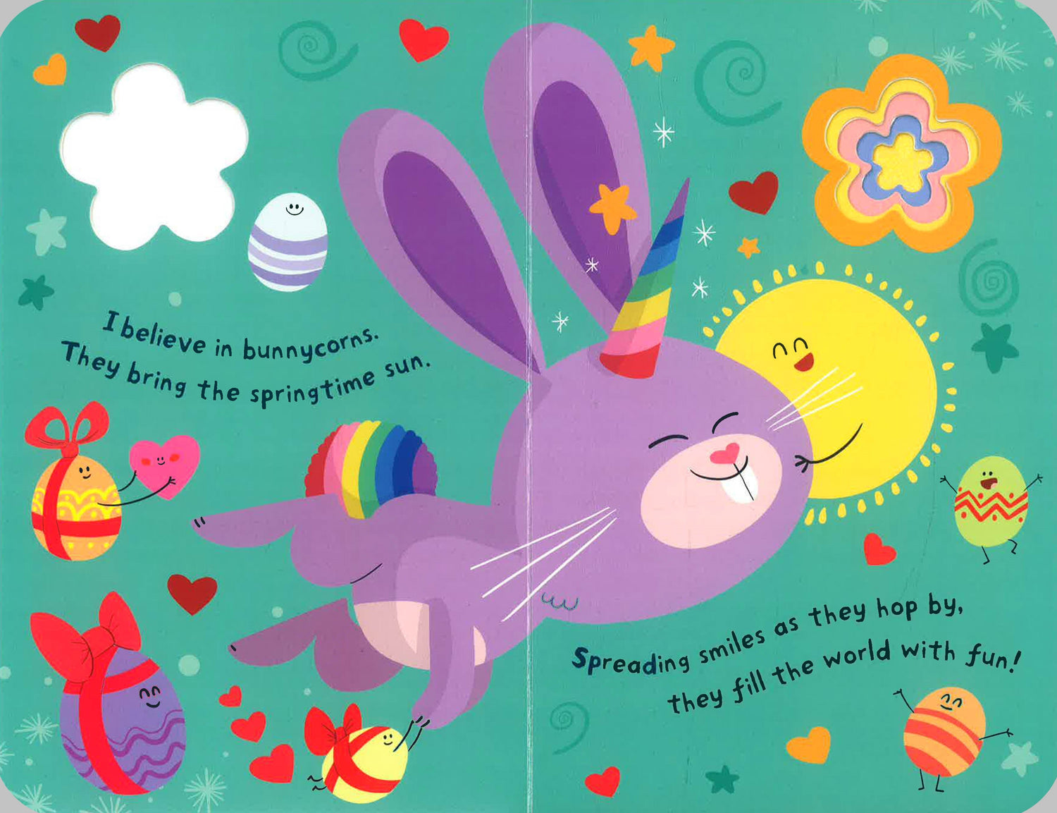 Do you believe in bunnycorns? That’s right–half-unicorn, half-bunnies are hopping your way in this candy-colored die-cut board book companion to I Love My Llamacorn!