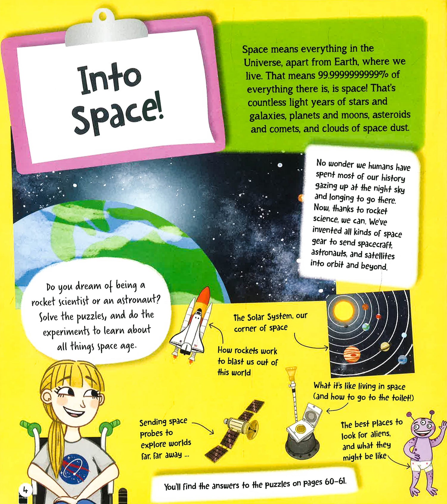 Do you have what it takes to be a rocket scientist? Yes, of course you do - and this action-packed book will prove it! Doodle the designs for your own space launch; build a prototype rocket from a plastic bottle; and solve an awesome solar system wordsearch! While you're drawing, making and playing, you'll be learning all kinds of exciting facts and ideas about the world of S.T. E.M - science, technology, engineering, and maths. An awesome book for both boys and girls, aged 7+.