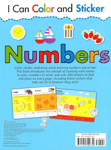 Introducing I Can Color and Sticker activity books--a new series that will teach concepts to kids with over 200 stickers to find and color! Children will love learning about numbers with this interactive sticker and activity book. Including color stickers to find and place as well as blank stickers for kids to color in themselves, this concept book allows kids to complete fun scenes and make up their own, too!