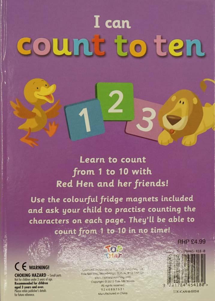 I Can Count to Ten is a hardback novelty book that includes fridge number magnets and which makes learning to count from one to ten fun! Boys and girls aged 3+ will love following Oakley Graham's fun rhyming text and Barry Green's colourful illustrations as they learn to count. Children can then use the included magnetic number pieces to consolidate learning in the book on a metal surface, such as a fridge.Includes colourful fridge magnet numbers for early years maths success - a perfect counting activity book to help your child to prepare for starting at school.