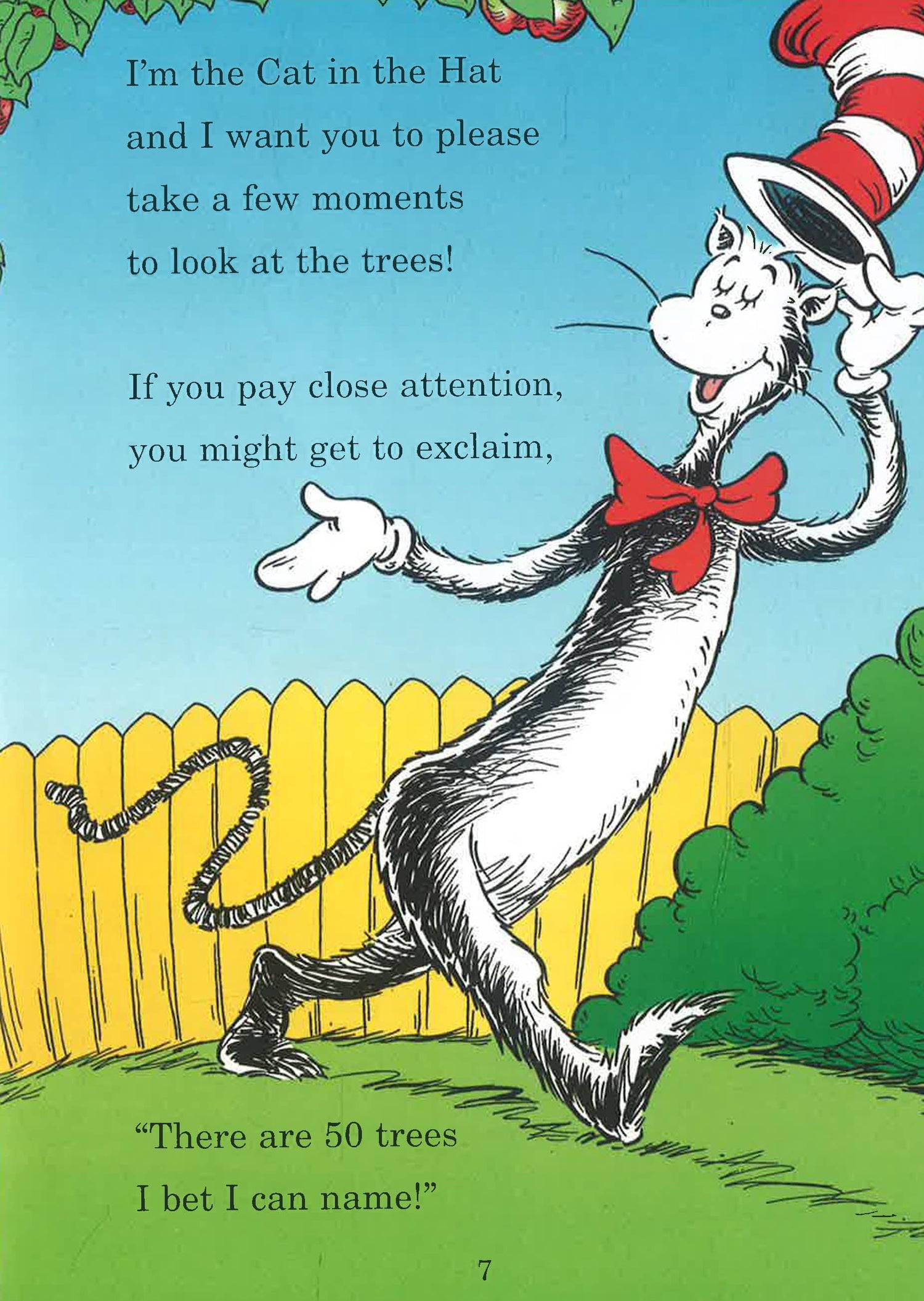 Im the Cat in the Hatand I want you to pleasetake a few momentsto look at the trees!Join the Cat in the Hat as he introduces beginning readers to trees.This title and others form part of a series of books that takes an off-beat look at nature and natural sciences through a fun combination of Seussian rhymes and zany illustrations. Aimed at early readers from four to seven year olds the books are designed to bridge the gap between concept books written for preschoolers and more formal non fiction titles that require fluent reading skills. By presenting the facts in a lively and rhythmic manner, they provide the critical foundation upon which complex facts and ideas can eventually be built.