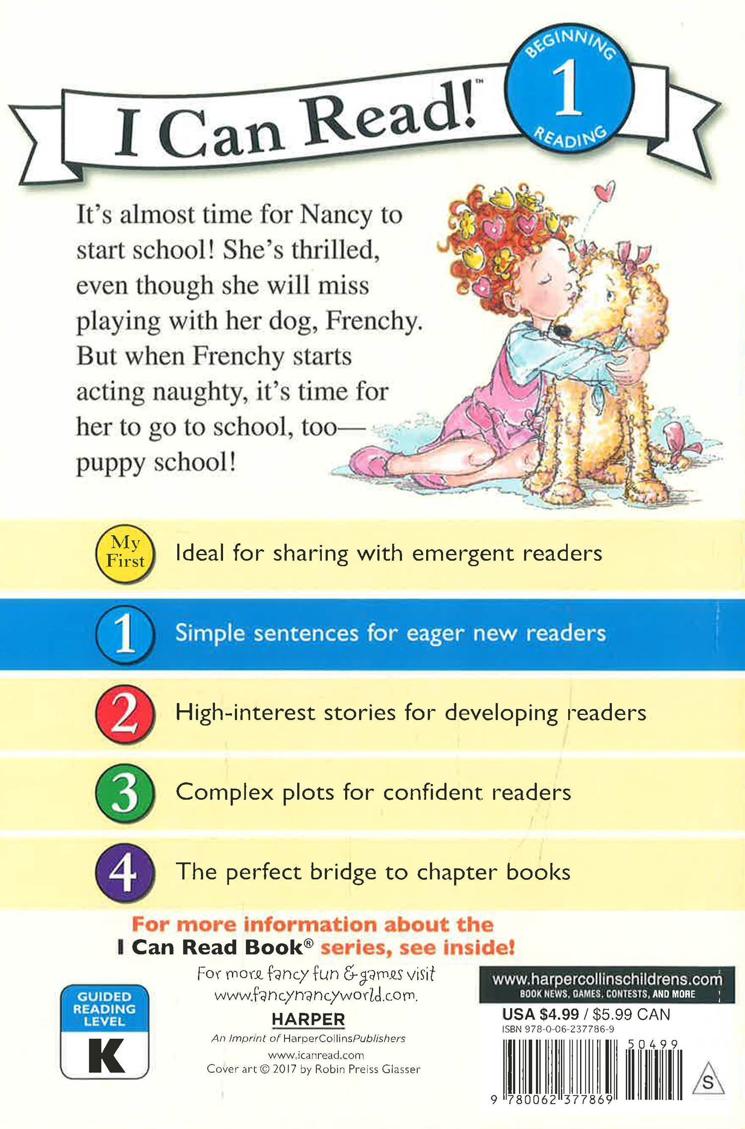 Ooh la la—school starts soon! Fancy Nancy can’t wait to go back, but she’ll miss Frenchy very much. Nancy’s loved playing with her favorite puppy all summer, but sometimes Frenchy can be a bit naughty. When she gets into trouble one too many times, the Clancys decide that it’s time for Frenchy to go to school, too—puppy school! But will Frenchy change her doggy ways?