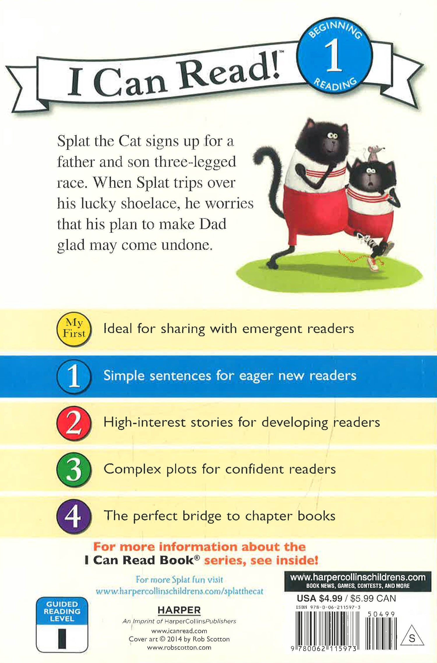 Join Splat the Cat in this funny beginning reader about field day. When Dad's team loses a soccer game, Splat decides to cheer up his dad by entering the two of them in a father-son six-legged race at the Cat School Picnic. The race doesn't go the way Splat hoped, but he still makes his dad very glad!