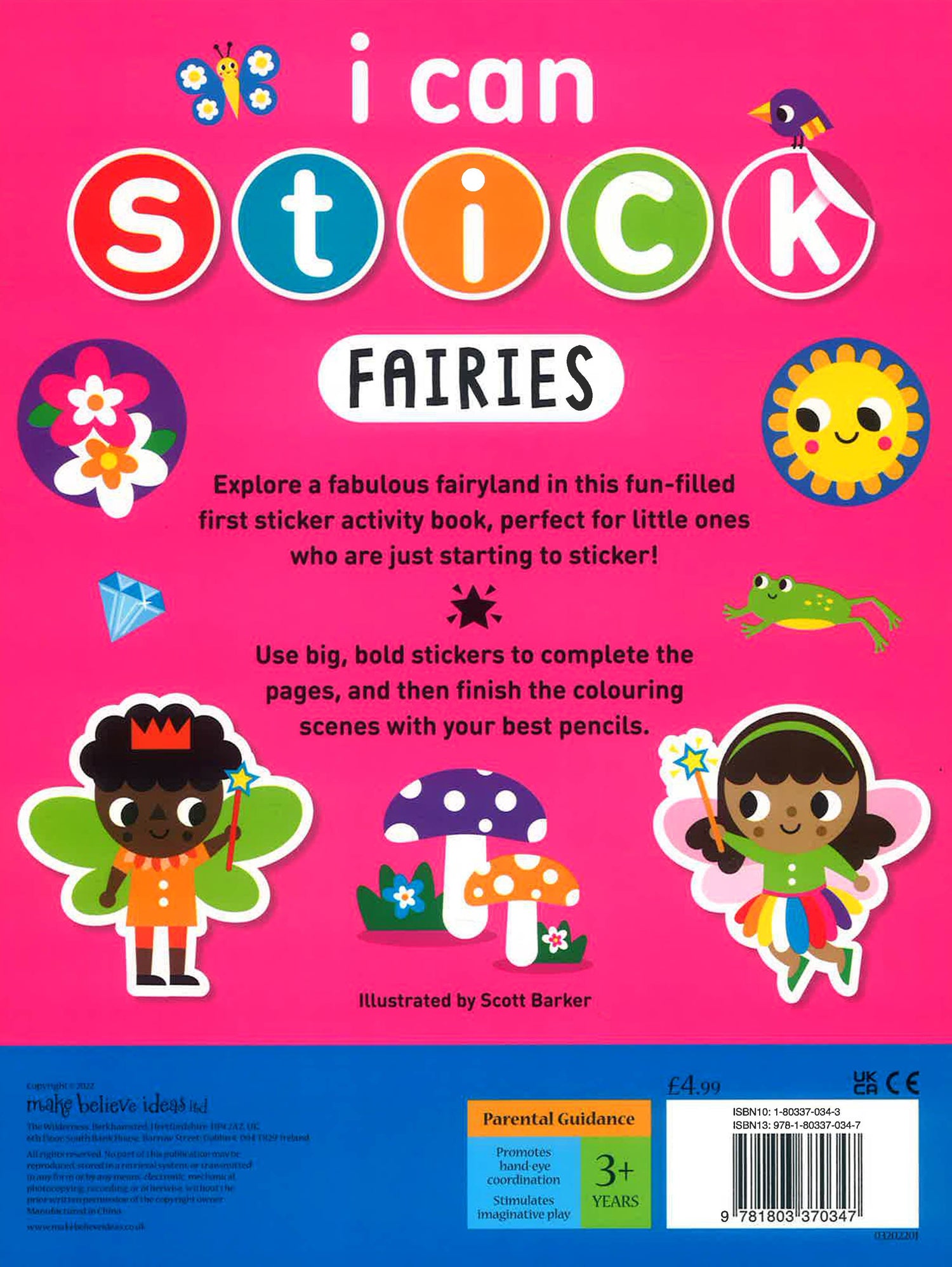 This fairy-themed sticker book is perfect for little ones who are just starting to sticker! It uses simple, shaped stickers and bright, bold illustrations to reinforce children's shape awareness and hand-eye coordination. The colourful pages and clear instructions allow children to make beautiful works of art they can be proud of.A FUN FAIRY STICKER BOOK WITH SHAPED STICKERS THAT ARE PERFECT FOR LITTLE HANDS! -An engaging first sticker book for young minds -Shaped stickers are perfect for little hands to use -Bright, bold illustrations and simple shapes help develop colour and shape recognition