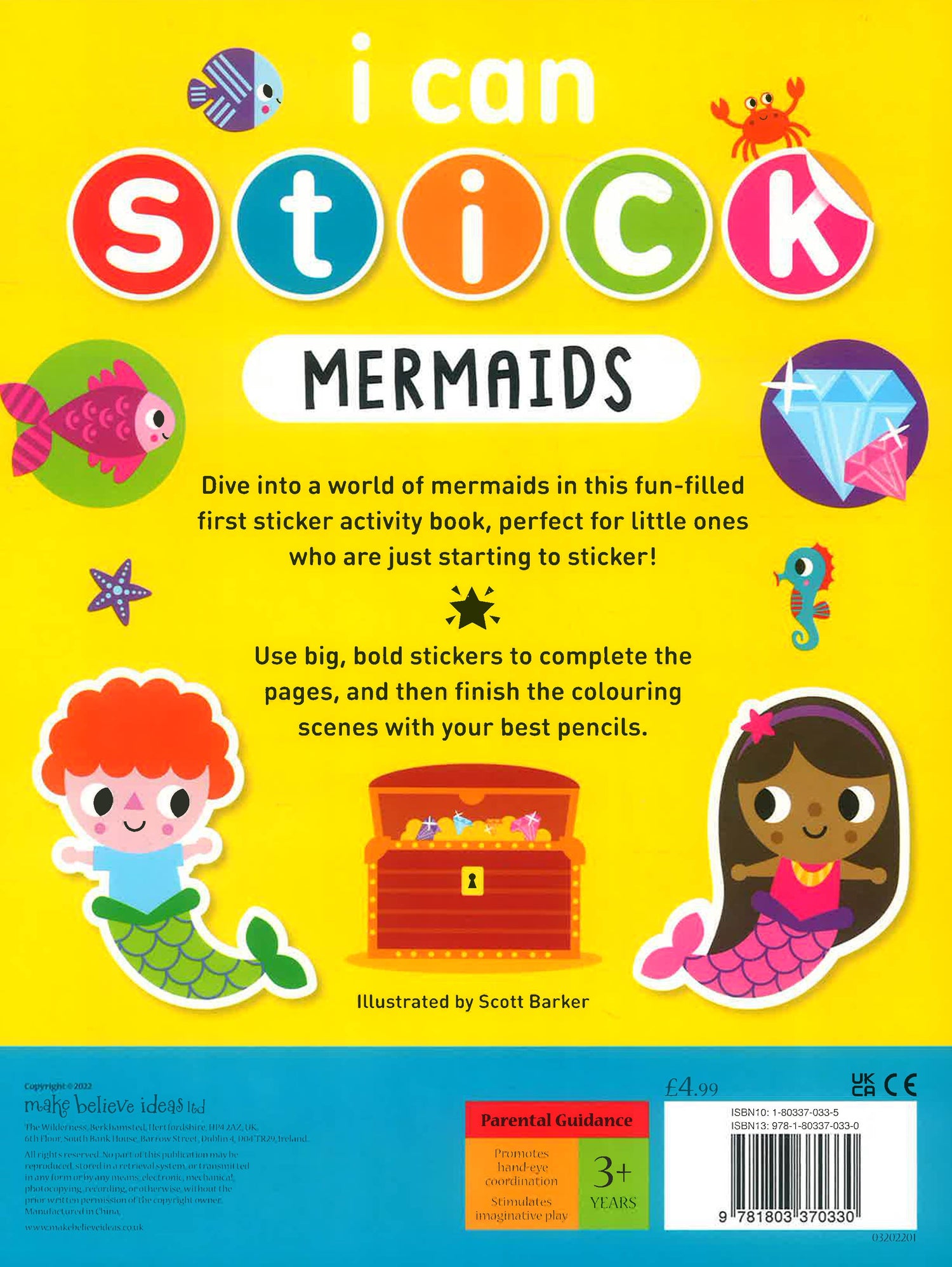 This mermaid-themed sticker book is perfect for little ones who are just starting to sticker! It uses simple, shaped stickers and bright, bold illustrations to reinforce children's shape awareness and hand-eye coordination. The colourful pages and clear instructions allow children to make beautiful works of art they can be proud of. A FUN MERMAID STICKER BOOK WITH SHAPED STICKERS THAT ARE PERFECT FOR LITTLE HANDS! -An engaging first sticker book for young minds -Shaped stickers are perfect for little hands to use -Bright, bold illustrations and simple shapes help develop colour and shape recognition
