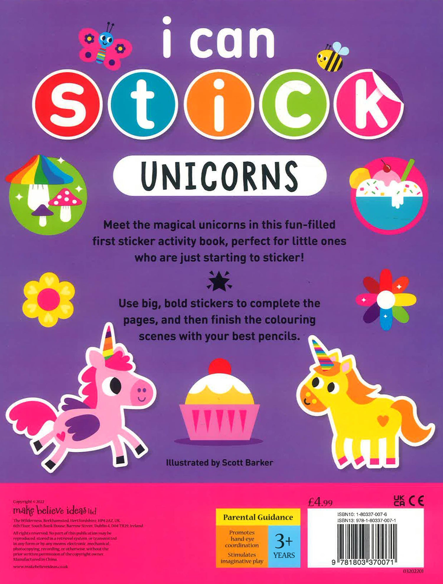 This unicorn-themed sticker book is perfect for little ones who are just starting to sticker! It uses simple, shaped stickers and bright, bold illustrations to reinforce children's shape awareness and hand-eye coordination. The colourful pages and clear instructions allow children to make beautiful works of art they can be proud of. A FUN MAGICAL CREATURE STICKER BOOK WITH SHAPED STICKERS THAT ARE PERFECT FOR LITTLE HANDS! -An engaging first sticker book for young minds -Shaped stickers are perfect for little hands to use -Bright, bold illustrations and simple shapes help develop colour and shape recognition