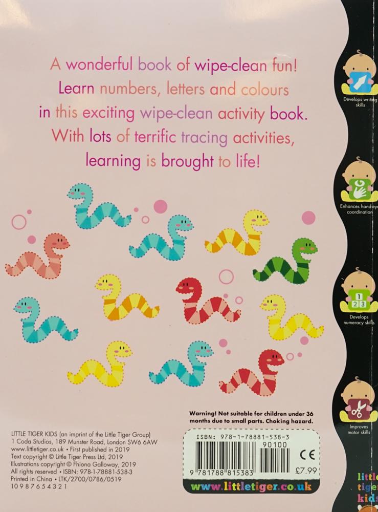A wonderful book of wipe-clean fun! Learn numbers, letters and colours in this exciting wipe-clean activity book. With lots of terrific tracing activities, learning is brought to life.