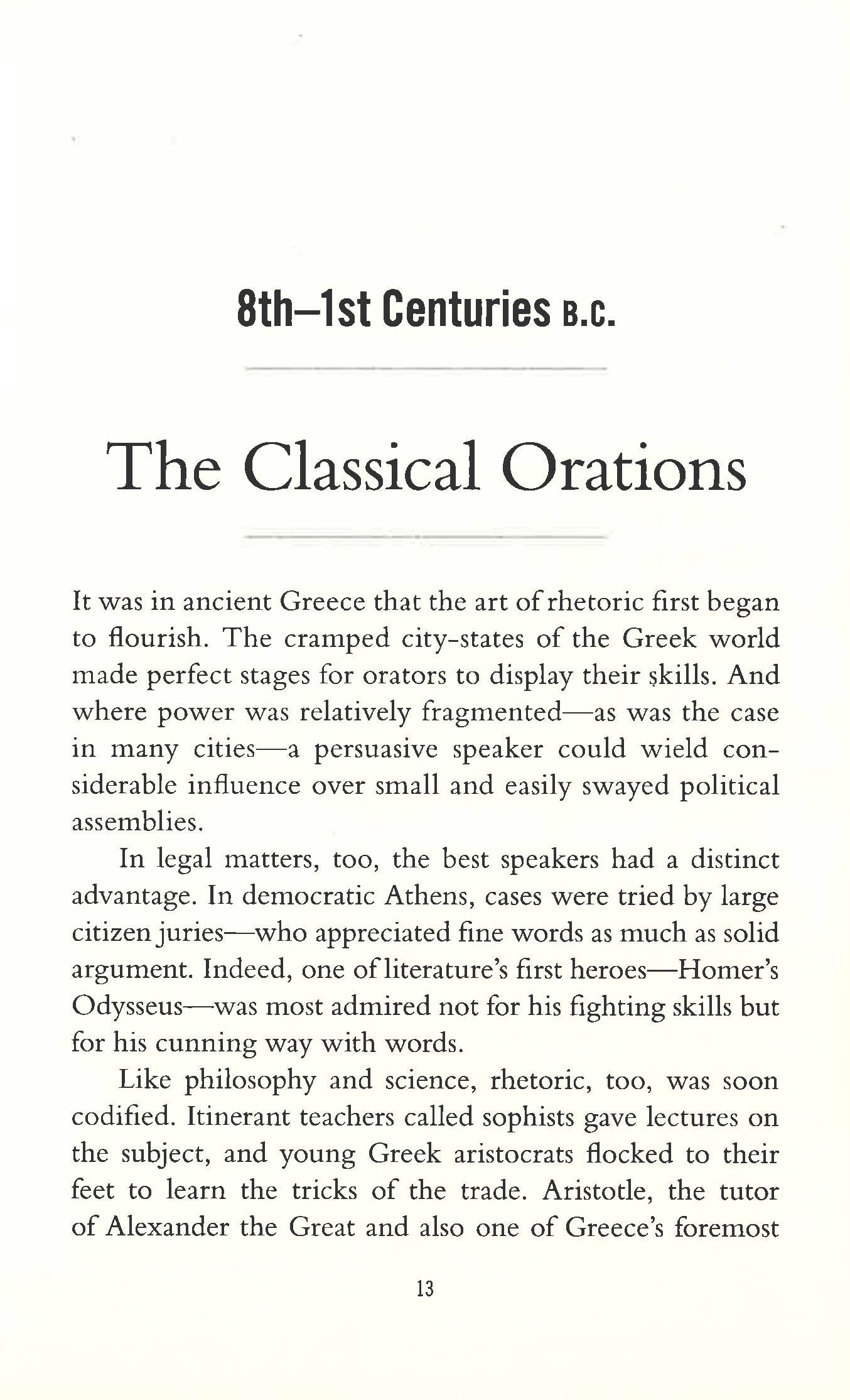 Sticks and stones may break bones, but words can inspire an angry mob to pick up those clubs in the first place. This collection of fifty speeches reveals how men and women throughout the ages changed the course of history. Featuring classical orators, wartime heroes, and contemporary icons, from Elizabeth I to Abraham Lincoln, from Margaret Thatcher to Nelson Mandela, right up through Barack Obama, "I Dare Say: Great Speeches that Changed the World" tells the great stories of human history, including: - The Ancient World: Public speaking became an art in ancient Greece and Rome, and the records of speeches written by philosophers and teachers such as Homer and Cicero form the bedrock for modern philosophical thought and epic literary works. - European History: The bloody Crusades, fractious divisions among the European powers, and a political philosophy of terror redraw the maps of Europe. - Early American History: The dynamic speeches that rallied thousands to join arms against their motherland--and their brothers--from the American Revolution to the Civil War. - Slavery, Suffrage, and Civil Rights: Impassioned and eloquent speeches from luminaries such as Sojourner Truth, Dr. Martin Luther King, Jr., and Hillary Rodham Clinton document the struggle for equal rights that shapes the modern world. - World Wars I and II: The rallying cries to protect, defend, and conquer that defined the twenty-first century--from both the winners and losers of the great World Wars. - Colonialism and Apartheid: The calls for peace and equality from leaders such as Mandela and Jawaharlal Nehru as the global maps were redrawn once again. - Global Terrorism: The speeches from Osama bin Laden, George W. Bush, and others that created a new "war on terror" and reshaped American government. - Contemporary American Politics: A look at the speeches that touched the nation, that put a man to the moon, and that helped Barack Obama, the first African-American U.S. president, rise to office.