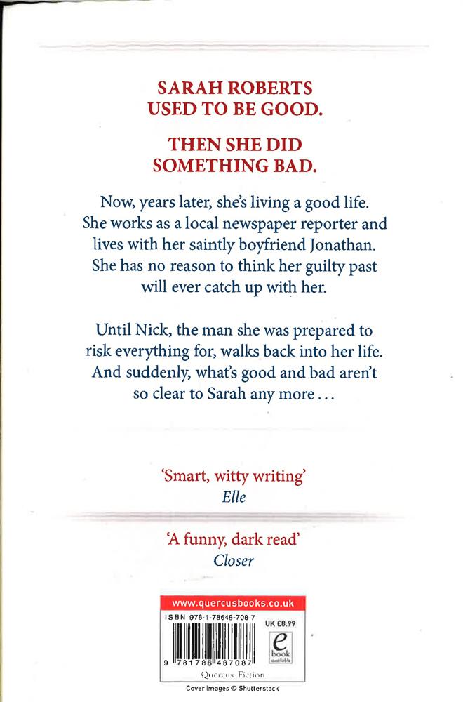 Utterly compulsive' Amazon reviewer. From the #1 bestselling author of While My Eyes Were Closed. Sarah Roberts used to be good. Then she did something bad. Very bad. Now, years later, she's living a good life. She works as a local newspaper reporter and lives with her saintly boyfriend Jonathan. She has no reason to think her guilty past will ever catch up with her. Until Nick, the man she was prepared to risk everything for, walks back into her life. And suddenly, what's good and bad aren't so clear to Sarah any more . . .