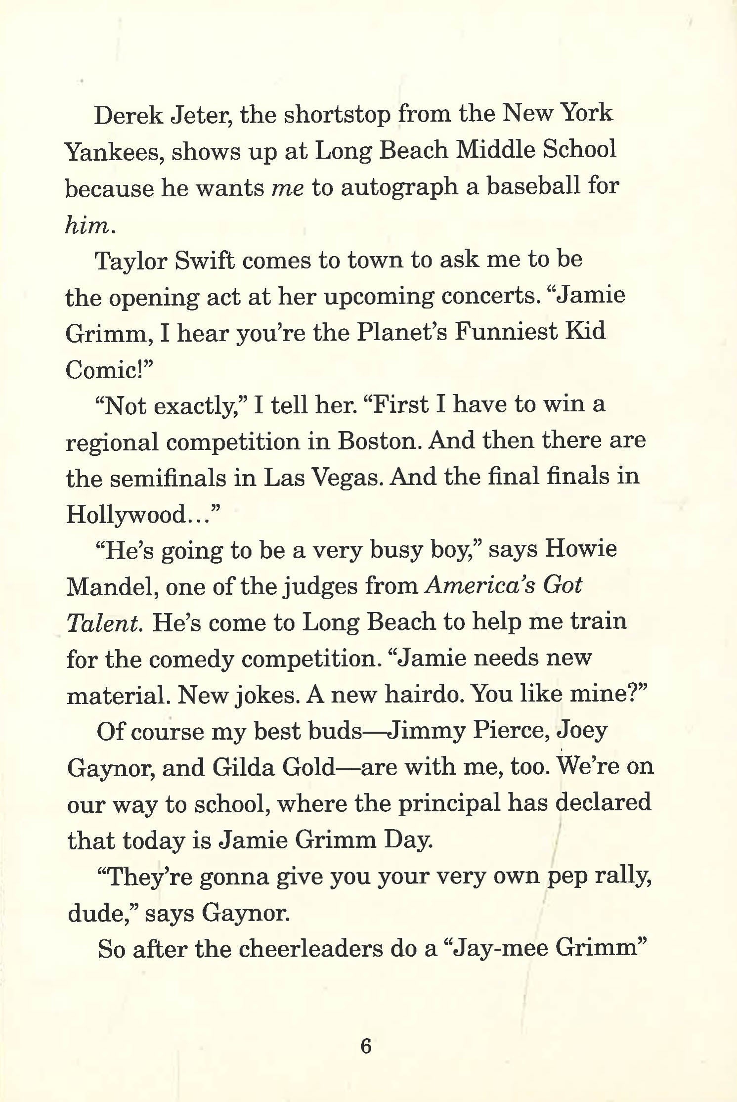 Middle schooler Jamie Grimm has big dreams of being the best stand-up comic in the world - and he won't let the fact that he's in a wheelchair get in his way. After winning the New York state finals in the Planet's Funniest Kid Comic Contest, Jamie's off to Boston to compete in the national semi-finals. But when one of his best buddies runs into trouble at school and a sudden family health scare rears its head, Jamie has to put his comedic ambitions on hold and stand by the people he cares about. Can Jamie pass up the big competition for the sake of his friends and family?
