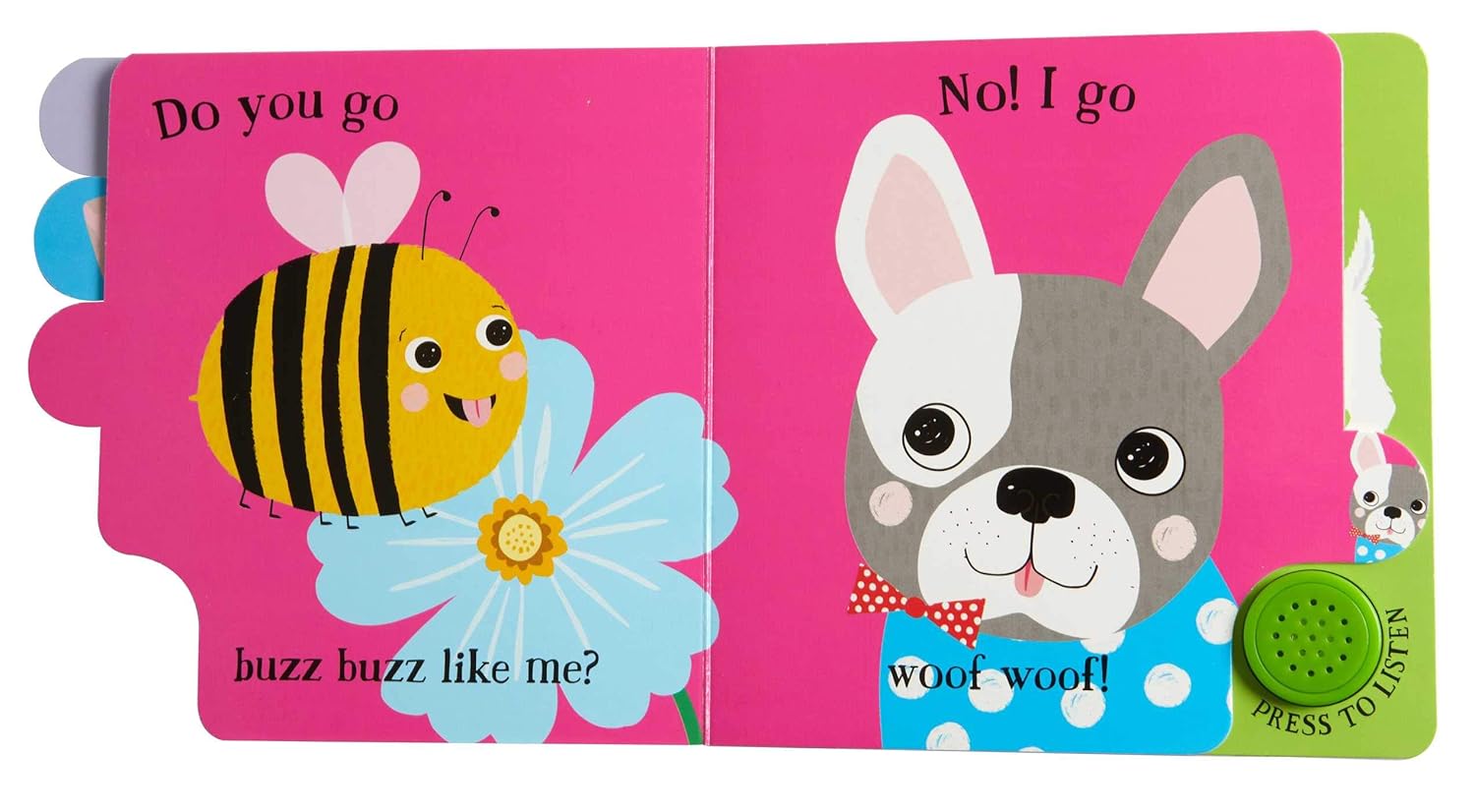 Engage your senses with fun in this lift-the-flap book with sounds. Toddlers will love the call-and-response text, delightful illustrations, and simple sound to press that allows them to interact with the book through sight, touch, and sound. Tabbed pages hold visual cues that hint at the matching sound. Enjoy family time together with this engaging sound book.