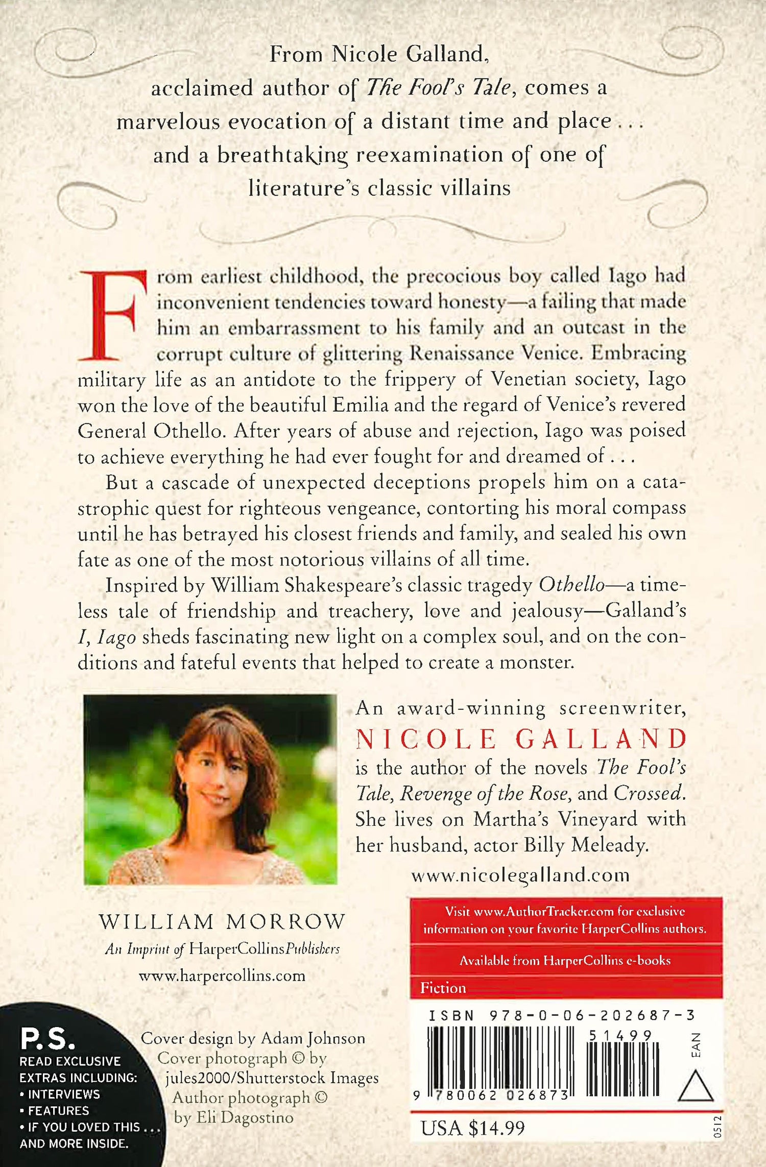 ?Nicole Galland is exceptionally well versed in the fine nuances of storytelling.? ?St. Petersburg Times ?Galland has an exceptional gift.? ?Neal Stephenson The critically acclaimed author of The Fool's Tale, Nicole Galland now approaches William Shakespeare's classic drama of jealousy, betrayal, and murder from the opposite side. I, Iago is an ingenious, brilliantly crafted novel that allows one of literature's greatest villains--the deceitful schemer Iago, from the Bard's immortal tragedy, Othello--to take center stage in order to reveal his "true" motivations. This is Iago as you've never known him, his past and influences breathtakingly illuminated, in a fictional reexamination that explores the eternal question: is true evil the result of nature versus nurture...or something even more complicated? *This book may have remainder mark*