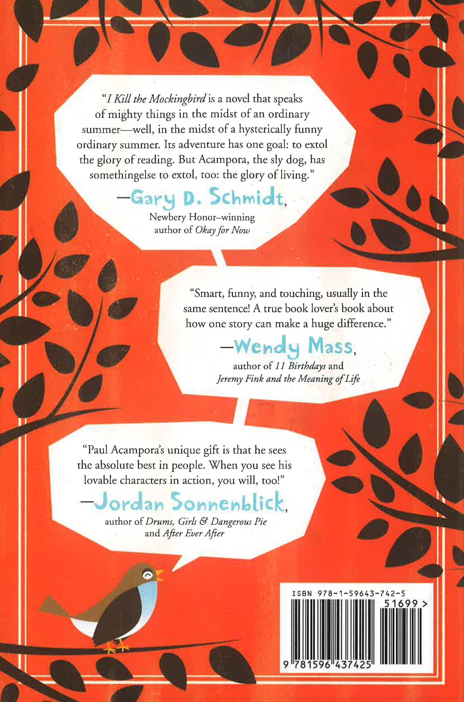 When Lucy, Elena, and Michael receive their summer reading list, they are excited to see To Kill A Mockingbird included. But not everyone in their class shares the same enthusiasm. So they hatch a plot to get the entire town talking about the well-known Harper Lee classic. They plan controversial ways to get people to read the book, including re-shelving copies of the book in bookstores so that people think they are missing and starting a website committed to "destroying the mockingbird." Their efforts are successful when all of the hullabaloo starts to direct more people to the book. But soon, their exploits start to spin out of control and they unwittingly start a mini revolution in the name of books. This title has Common Core connections.