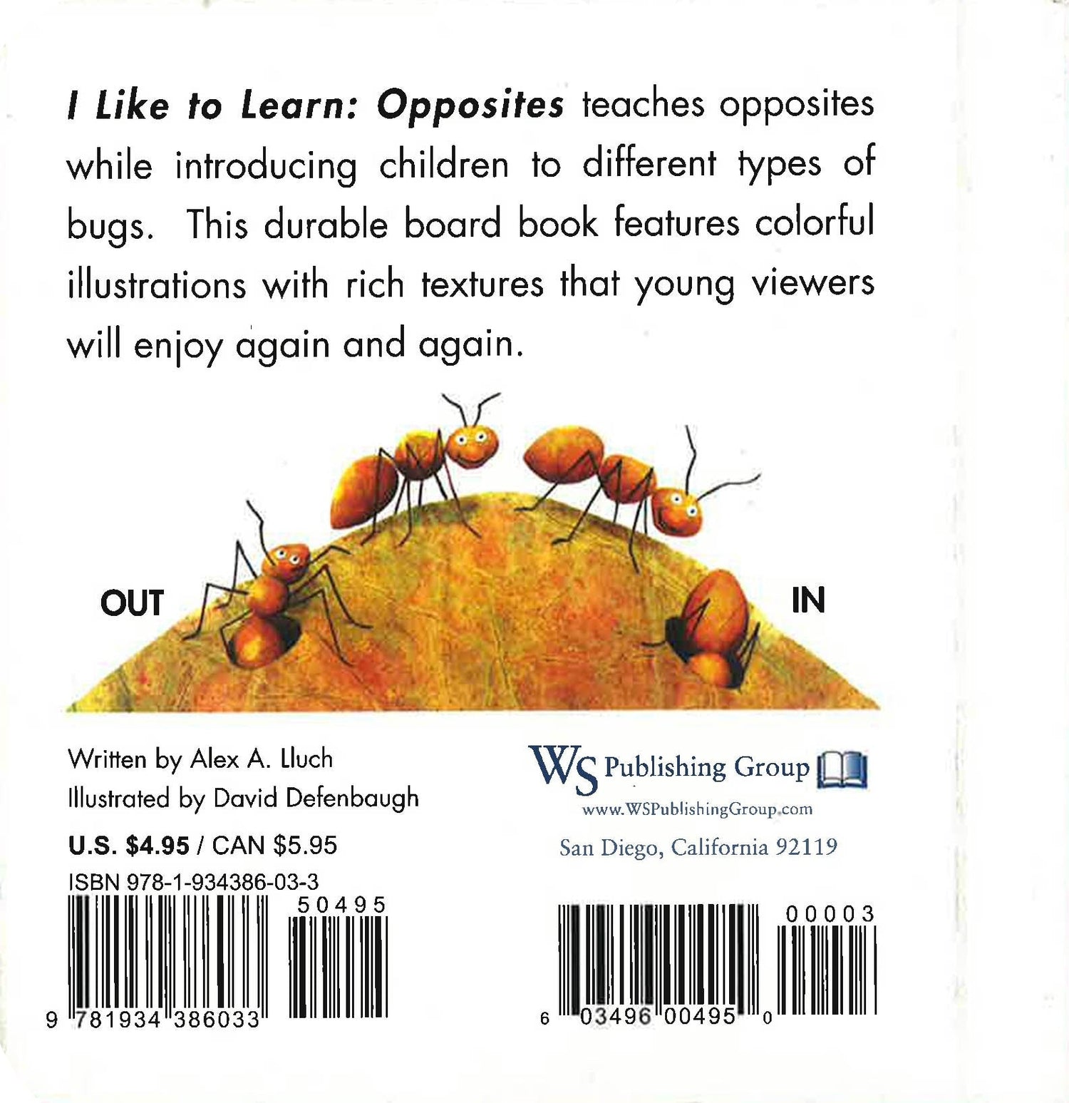 The US Census Bureau estimates that over 8 million children enroll in nursery school or kindergarten every year. The educational success of these children depends largely on their knowledge of the alphabet, numbers, colors, and opposites. The I Like to Learn Opposites: Amazing Bugs teaches children these fundamental skills in a fun, playful, yet very effective way. The whimsically illustrated board book will help children learn their opposites with rich and colorful depictions of bugs. With beautiful hand-drawn illustrations, it s a fun and exciting way of learning opposites that kids will never tire of.