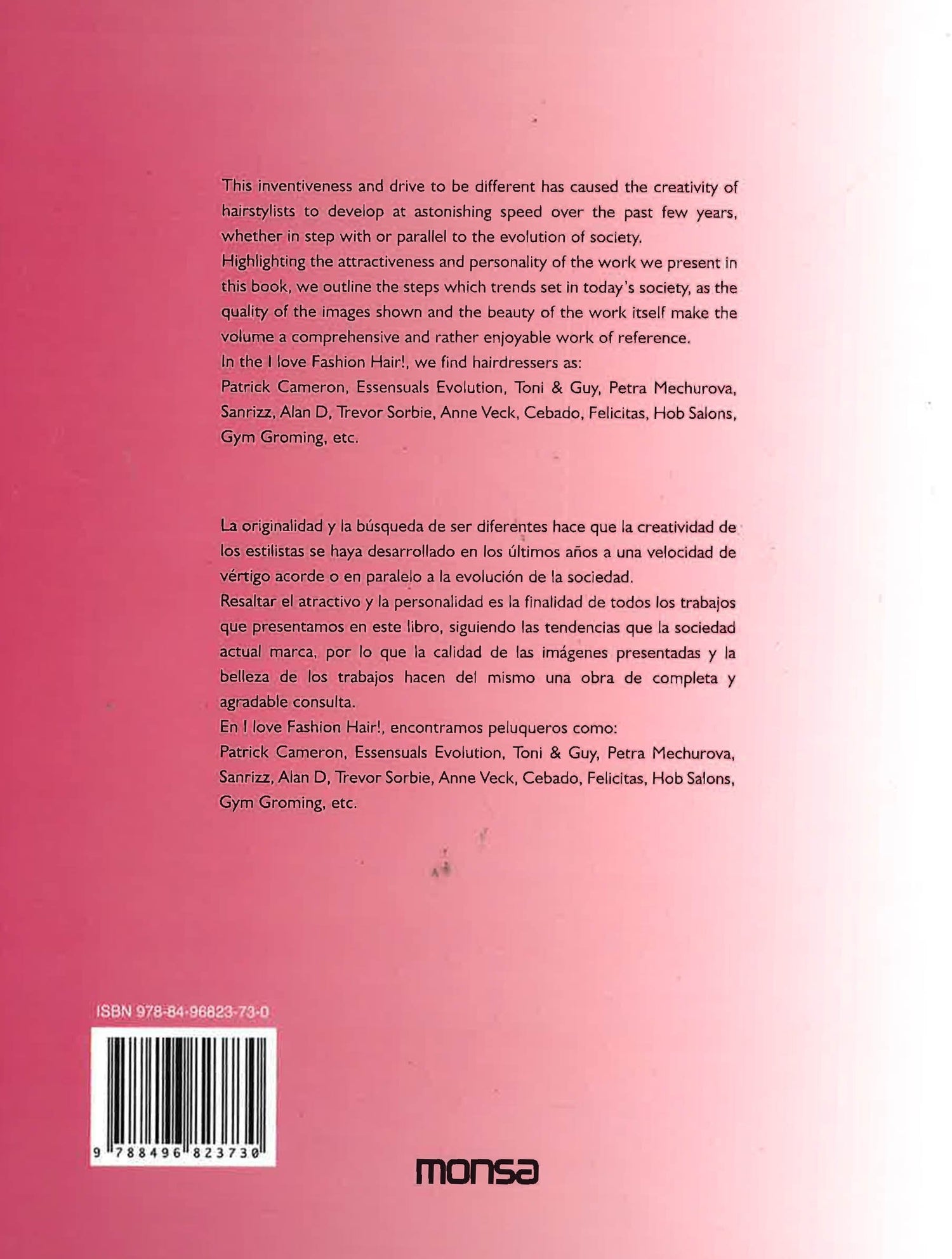 This is a visual guide to fashion hair styles. Illustrating the latest trends in men's and women's hairstyles, "I Love Fashion Hair" celebrates the cult of caring for your look and standing out from the crowd! The inventiveness and creativity of stylists has developed with astonishing speed over the past few years, and the so-called global individualized look has risen to the point where the way of styling one's hair reflects a philosophy of life. In taking a look at the latest trends covering all types of hairstyles, we discover cutting-edge and modern looks, not to mention daring and fun ones too. And by travelling to different cities - home to the best stylists of the moment - we map a varied and fascinating route around the latest ideas from international stylists, including: Patrick Cameron, Essensuals Evolution, Toni & Guy, Trevor Sorbie, and more.