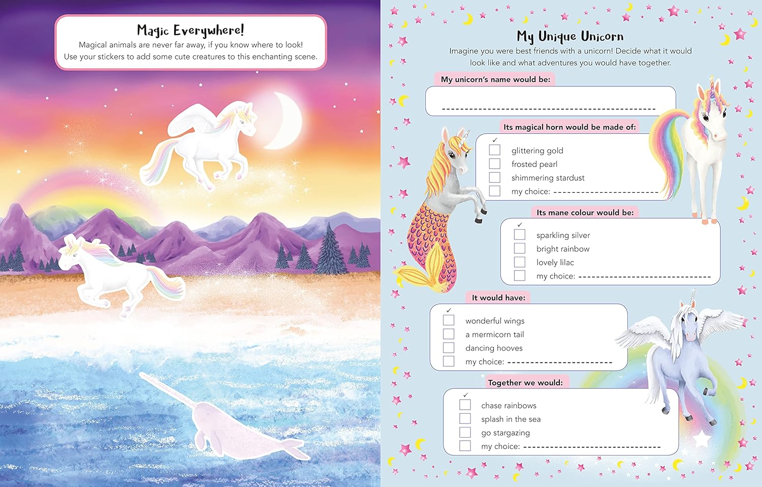 Explore an enchanted world in this magical unicorn sticker activity book! With over 400 stickers. This amazing activity book is bursting with unicorn magic. With a stunning shiny cover and beautiful illustrated pages, this is the perfect book for unicorn lovers. Discover lots of unicorn fun with exciting activities and special unicorn stickers: From search-and-find to super stickers scenes Make your own unicorn bookmark Discover a secret message and much more This amazing sticker activity book contains hours of unicorn fun!