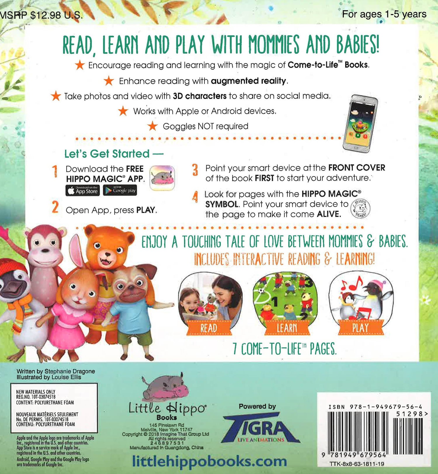 Little Hippo Augmented Reality "Magic Books" exist at the intersection of gaming and reading, technology and literacy, imagination and education. Each book comes with a free, downloadable app for mobile devices, the Hippo Magic App. Simply scan the pages of each book with a tablet or smartphone and watch the characters come to life in a 4D way!