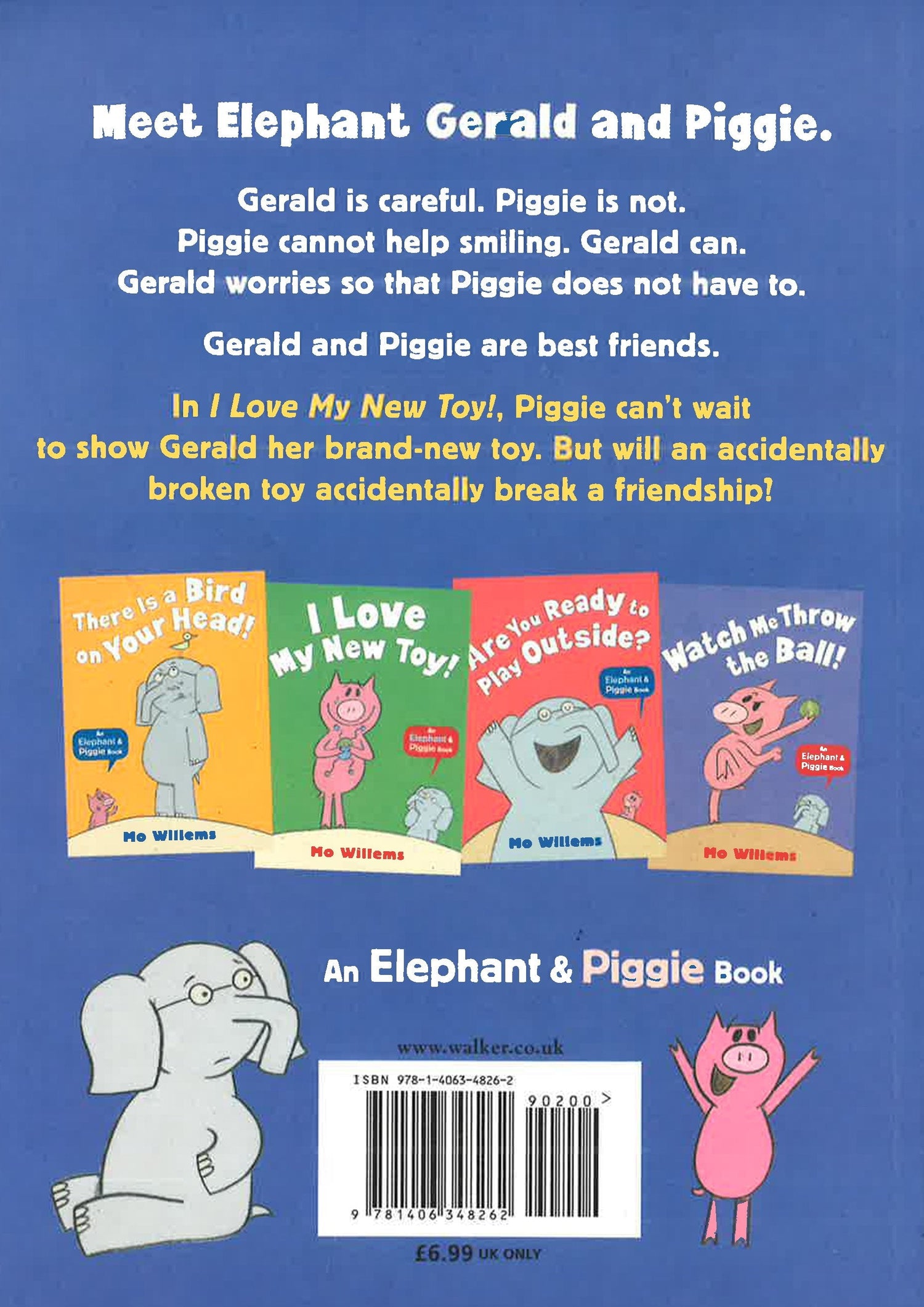 One of a series of delightfully humorous award-winning tales for beginner readers from the internationally acclaimed author-illustrator of Don't Let the Pigeon Drive the Bus! and Knuffle Bunny Gerald is careful. Piggie is not. Piggie cannot help smiling. Gerald can. Gerald worries so that Piggie does not have to. Gerald and Piggie are best friends. In I Love My New Toy!, Piggie can't wait to show Gerald her brand-new toy. But will an accidentally broken toy accidentally break a friendship?