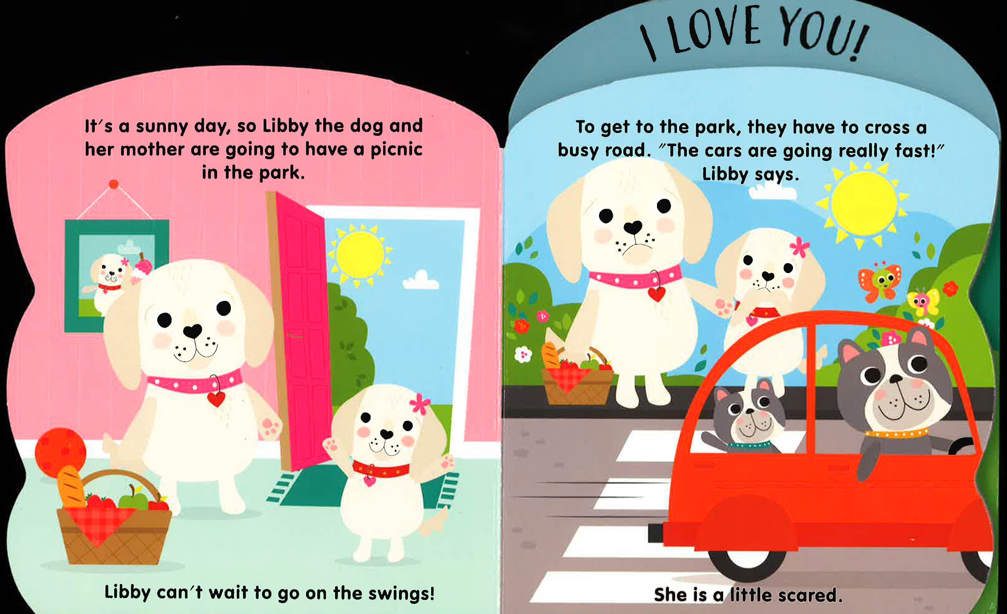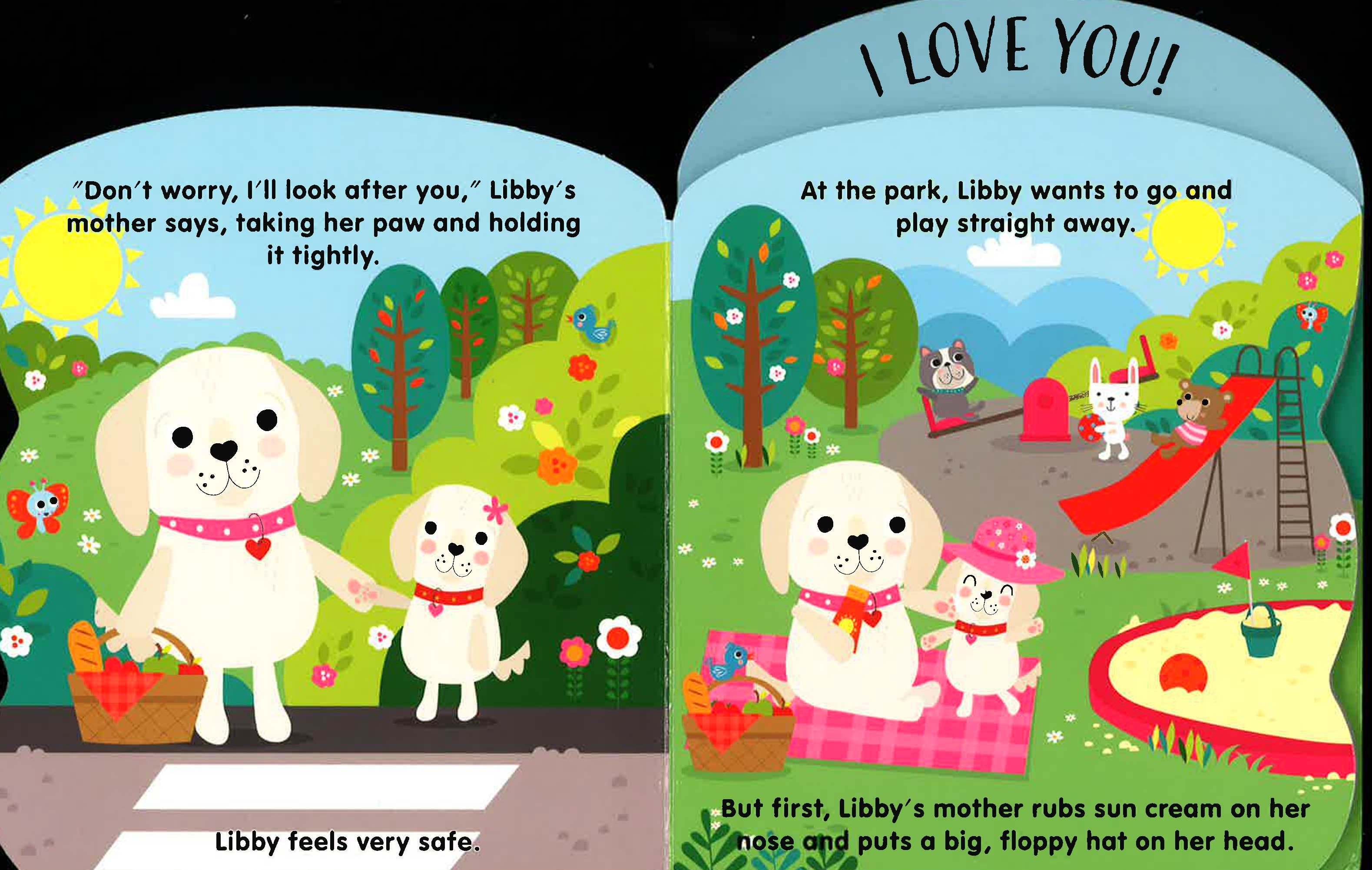 Read the tale of Libby the dog. At the park she has lots of fun and gets into a few scrapes too. Take a peek inside to see how Libby learns all about feelings of love, with her mother right by her side.