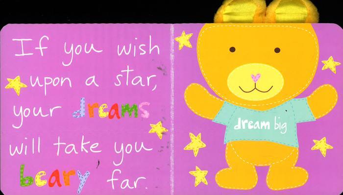 If you wish upon a star, your dreams will take you beary far...Parents will love cuddling up with their little ones and reading this interactive board book featuring plush, bendable teddy bear ears that make every page even more fun. Each turn of the page encourages children to think big, as parents tell them that whatever they drean of becoming, they will always always be 'beary' special! This adorable addition to this bestselling series reminds me little ones how much they are cherished through Sandra Magsamen's signature heartfelt text and cozy hand-stitched illustration style. *This book may have remainder mark and minor shelfwear*