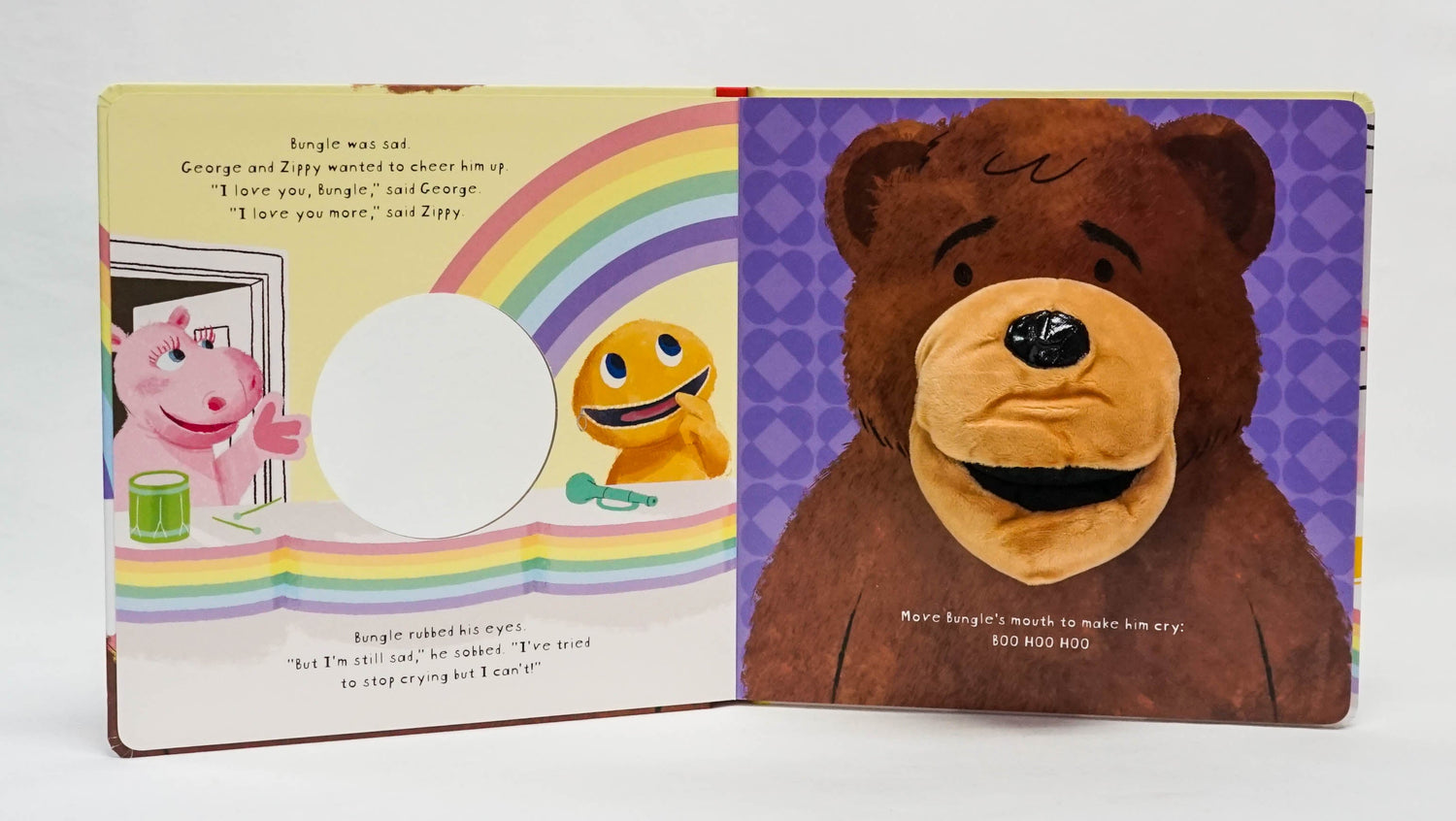Bungle's sad and it's up to his friends to cheer him up. In this adorable puppet book, George and Zippy cheer Bungle up with kisses, tickles and a song, but most importantly, with lots of love! About the Rainbow Hand Puppet series: With these three hand-puppet books, children will learn about friendship in Let's Play, George!, getting ready for bed in Time for Bed, Zippy!, and saying 'I love you!' in I Love You, Bungle! Bring the characters to life using the hand puppets and introduce children to the magical world of storytelling. Ideal for preschool-aged children to learn key language and social skills, as well a lovely nostalgic set for parents.