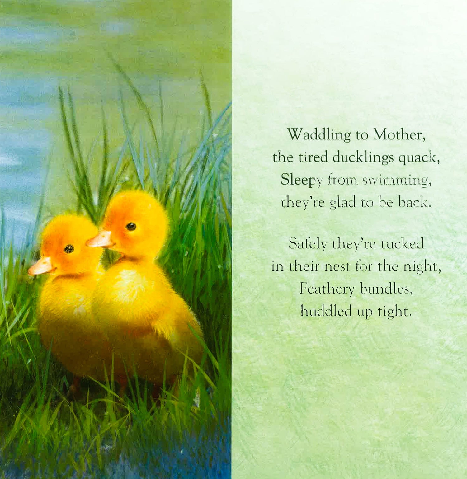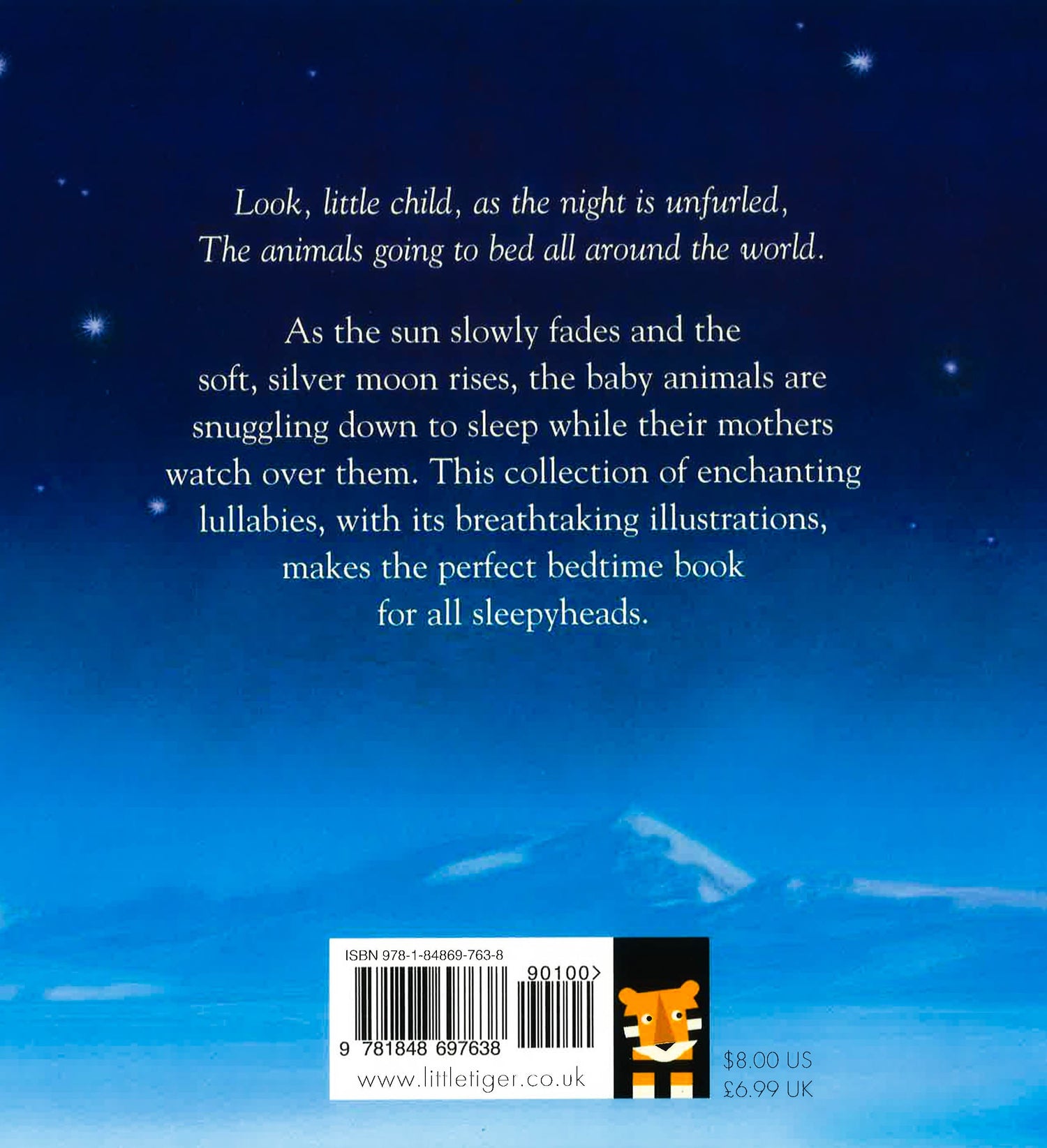 Look, little child, as the nights is unfurled, The animals going to bed all around the world. As the sun slowly fades and the soft, silver moons rises, the baby animals are snuggling down to to sleep while their mothers watch over them. This collection of enchanting lullabies, with it breathtaking illustrations, make the perfect bedtime book for all sleepyheads.