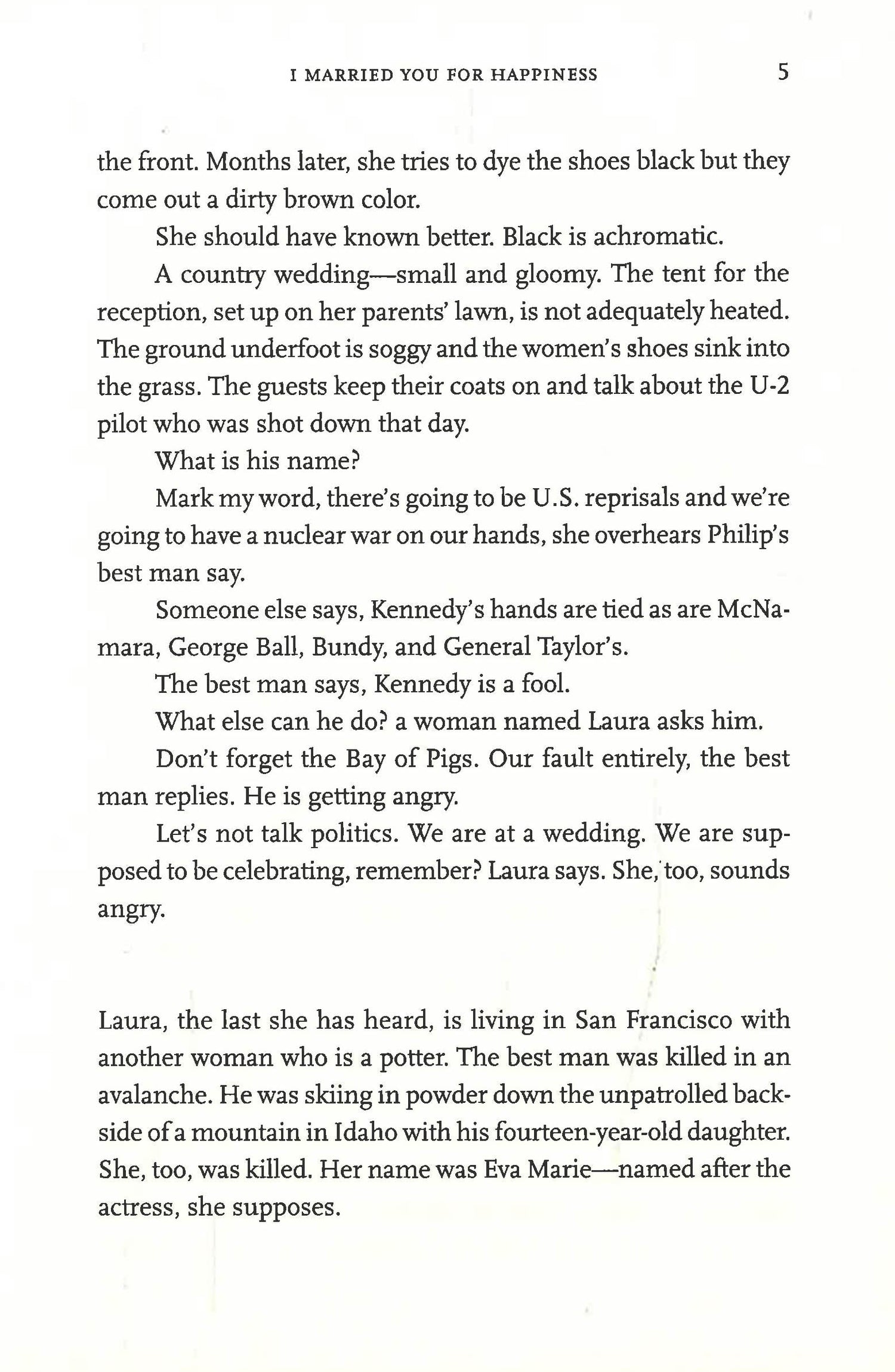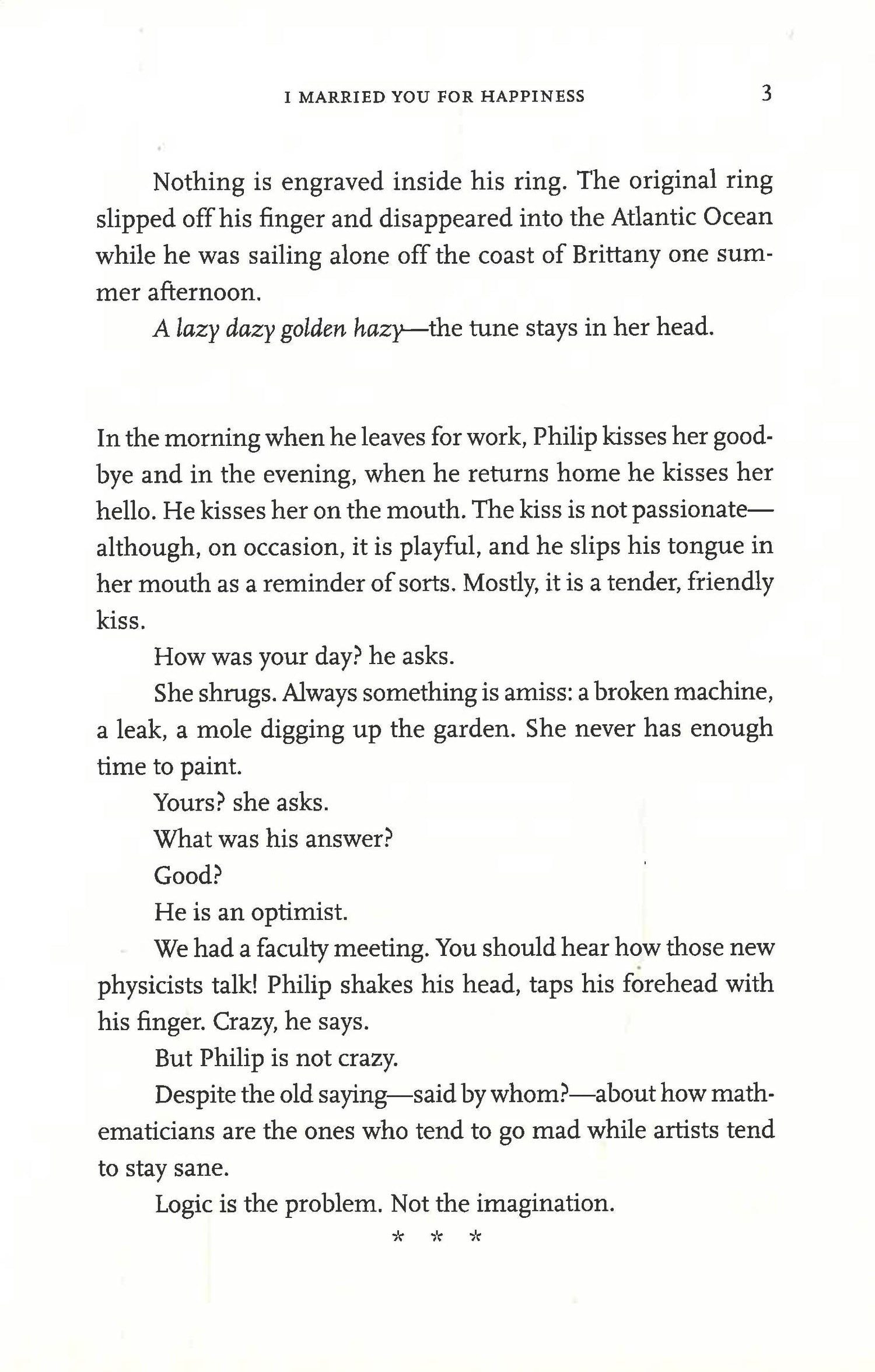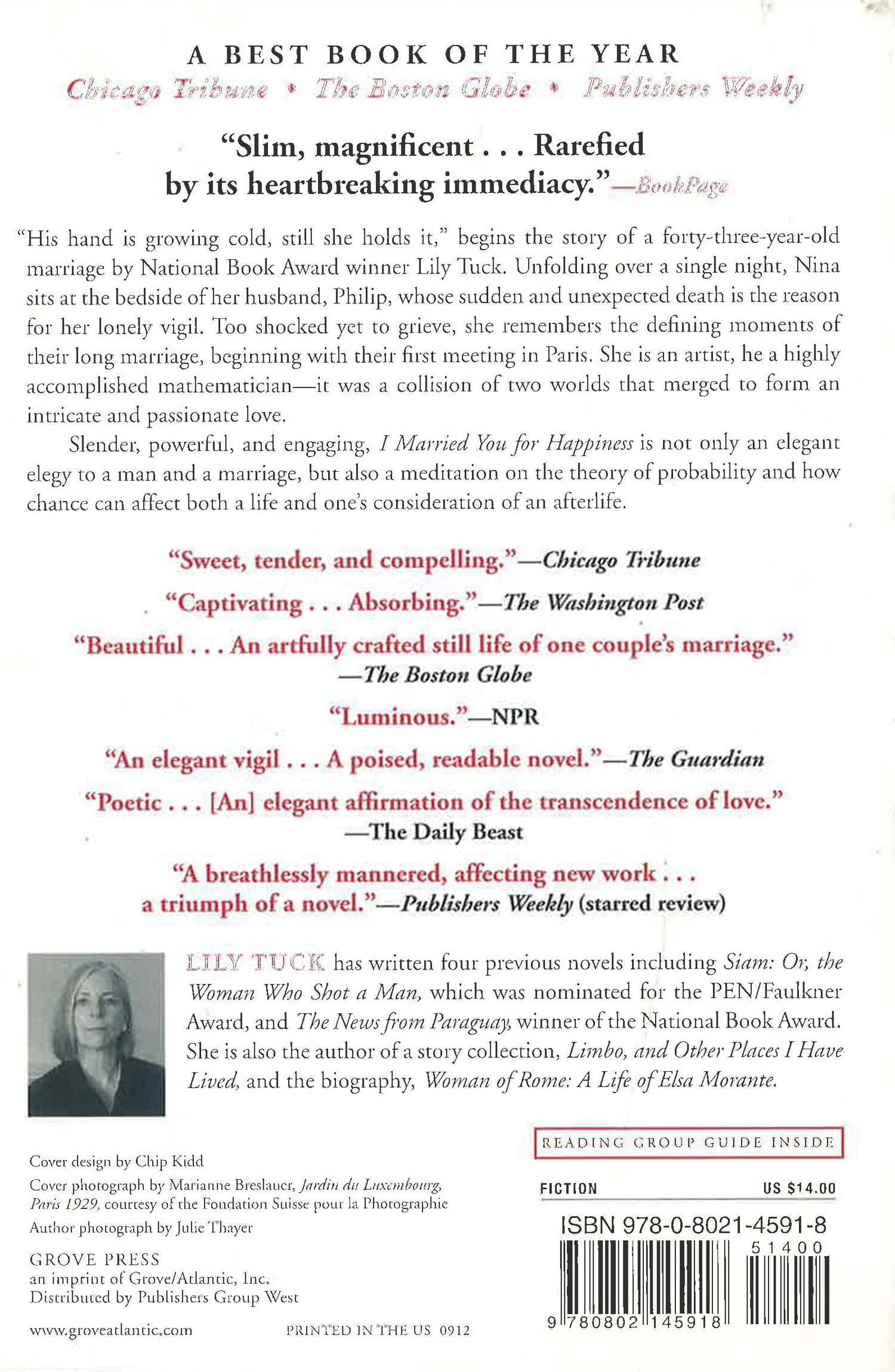 Slender, powerful, and utterly engaging, I Married You For Happiness is not only an elegant elegy to a man and a marriage, but also a meditation on the theory of probability and how chance can affect both a life and one's consideration of an afterlife.