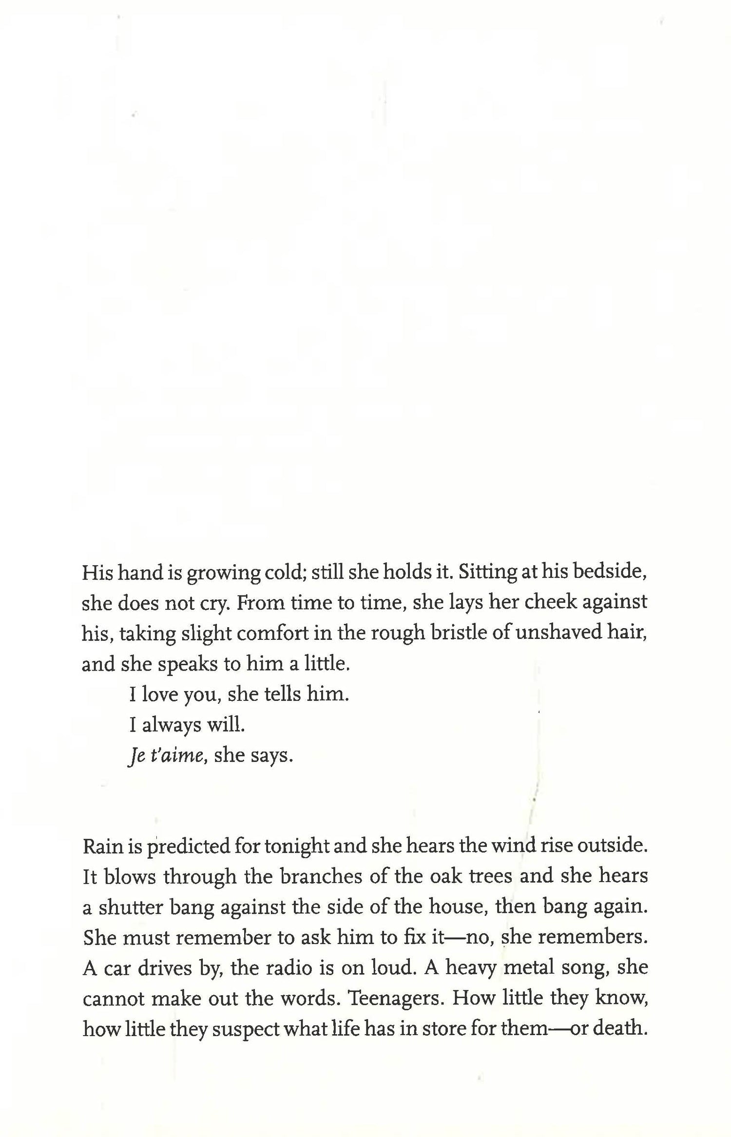 "His hand is growing cold, still she holds it," is how this riveting, deeply moving story of a forty-three year old marriage by National Book Award winner Lily Tuck begins. Unfolding over a single night, Nina sits at the bedside of her husband, Philip, whose sudden and unexpected death is the reason for her lonely vigil. Too shocked yet to grieve, she lets herself remember the defining moments of their long marriage, beginning with their first meeting in Paris. She is an artist, he a highly accomplished mathematician--it was a collision of two different worlds that merged to form an intricate and passionate love.