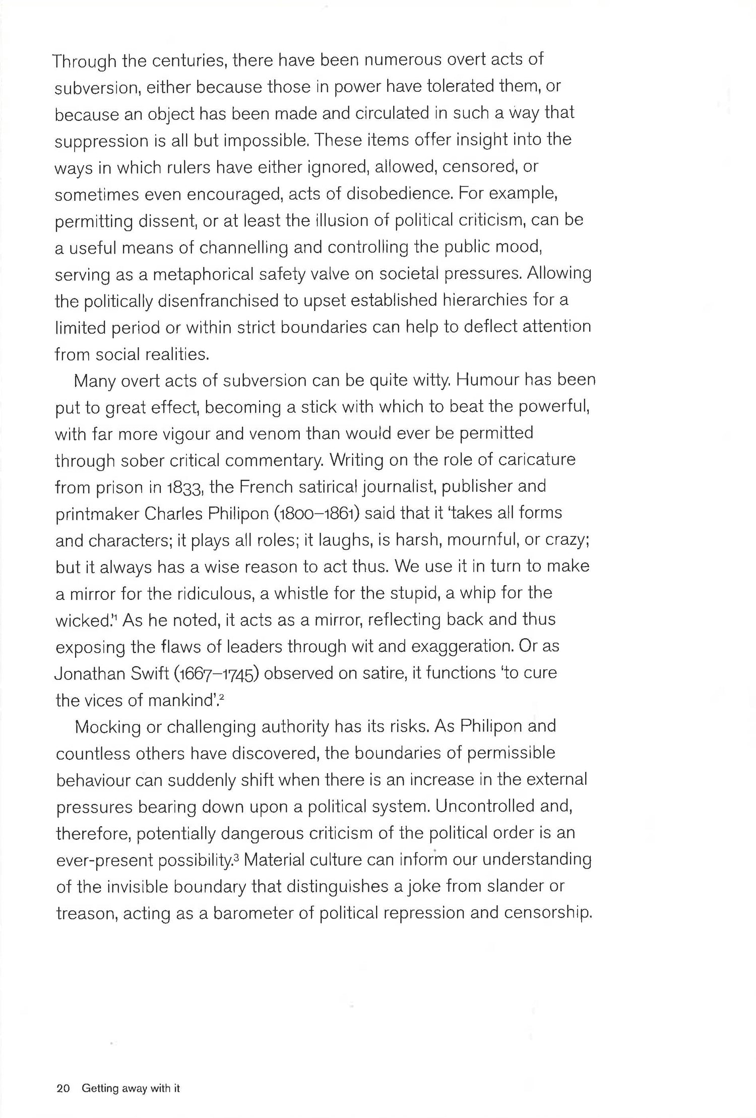 The book is organized into three sections: the first looks at overt challenges to authority, from defaced coins to visual satire; the second explores how subversive messages, codes, and metaphors can be concealed in, for example, clothing and jewelry; the third investigates the role of the artist as activist.
