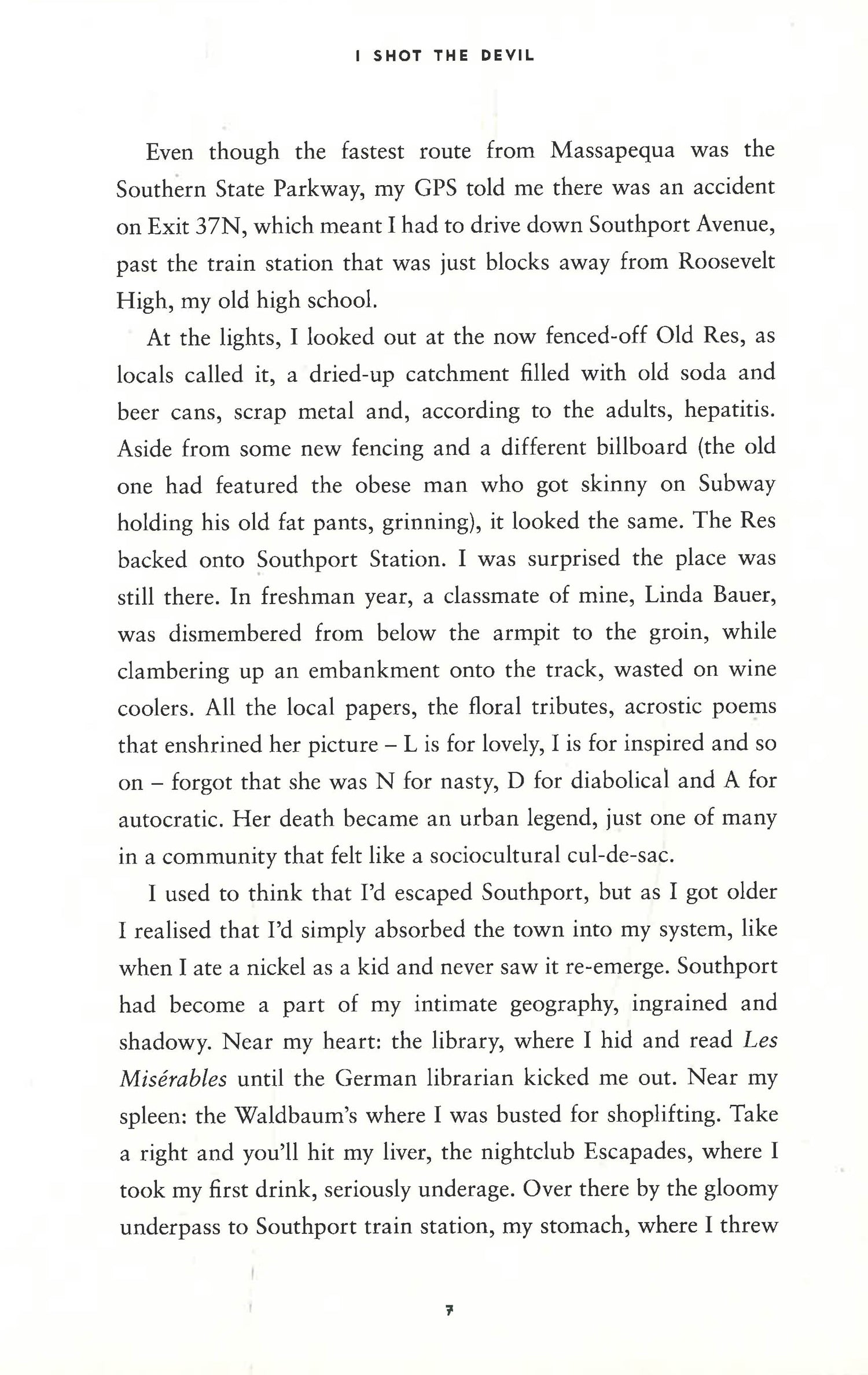 It was a game. But then it got real. A dark, twisty thriller of small town buried secrets for readers of THE DRY, THE GIRLS and THE SECRET HISTORY.Twenty years ago, the devil visited the woods around Southport, Long Island, claiming the lives of two boys. A local youth was charged with murder. Case closed. Now journalist Erin Sloane has been commissioned to dig deeper into the story and is sent notes from someone long forgotten. But can she trust what she unearths? And how can she unravel what happened when she has her own secrets to hide?The story of a community imploding and long buried secrets, I SHOT THE DEVIL is a stunning portrayal of teenage hysteria and sexuality.